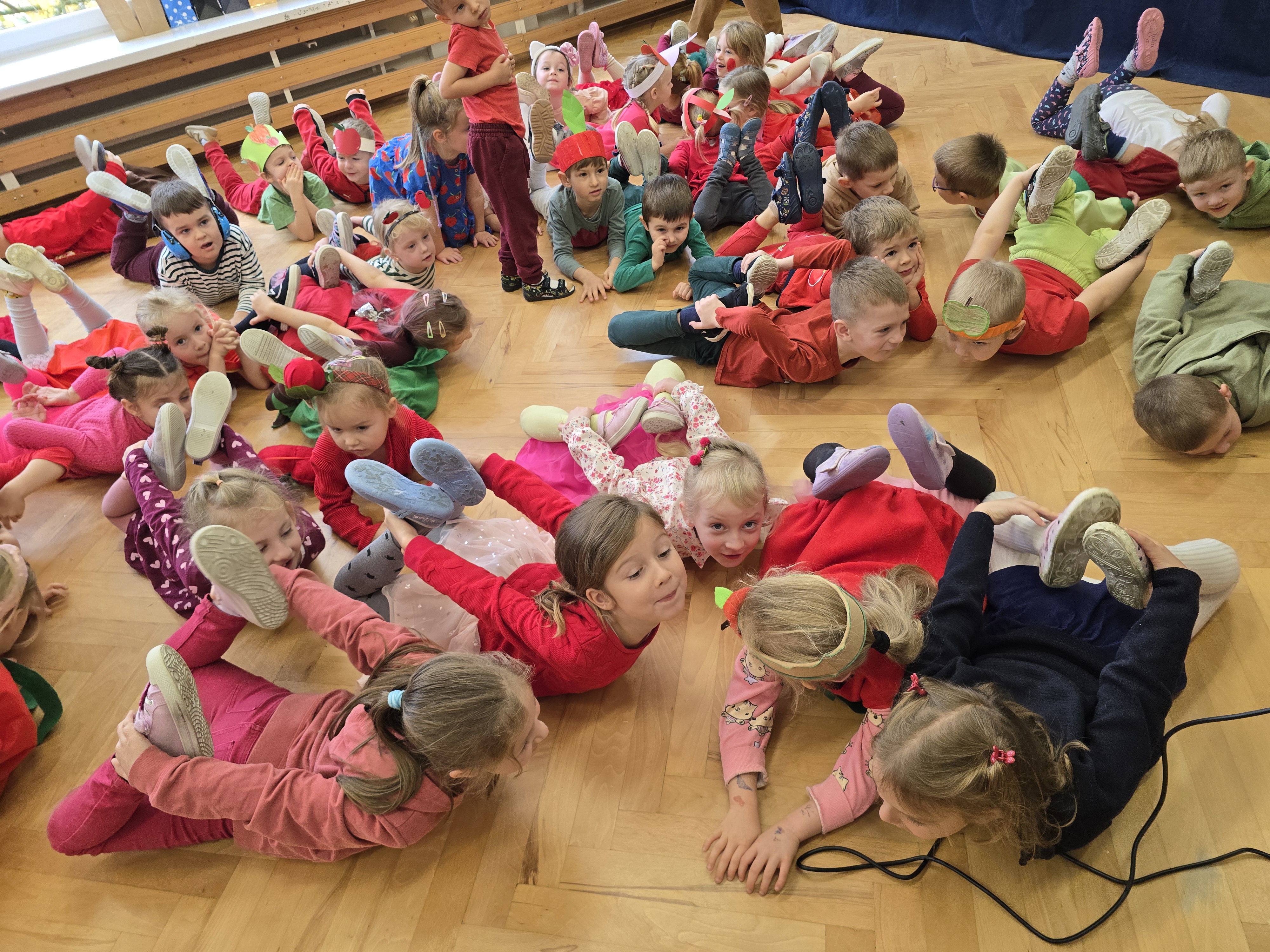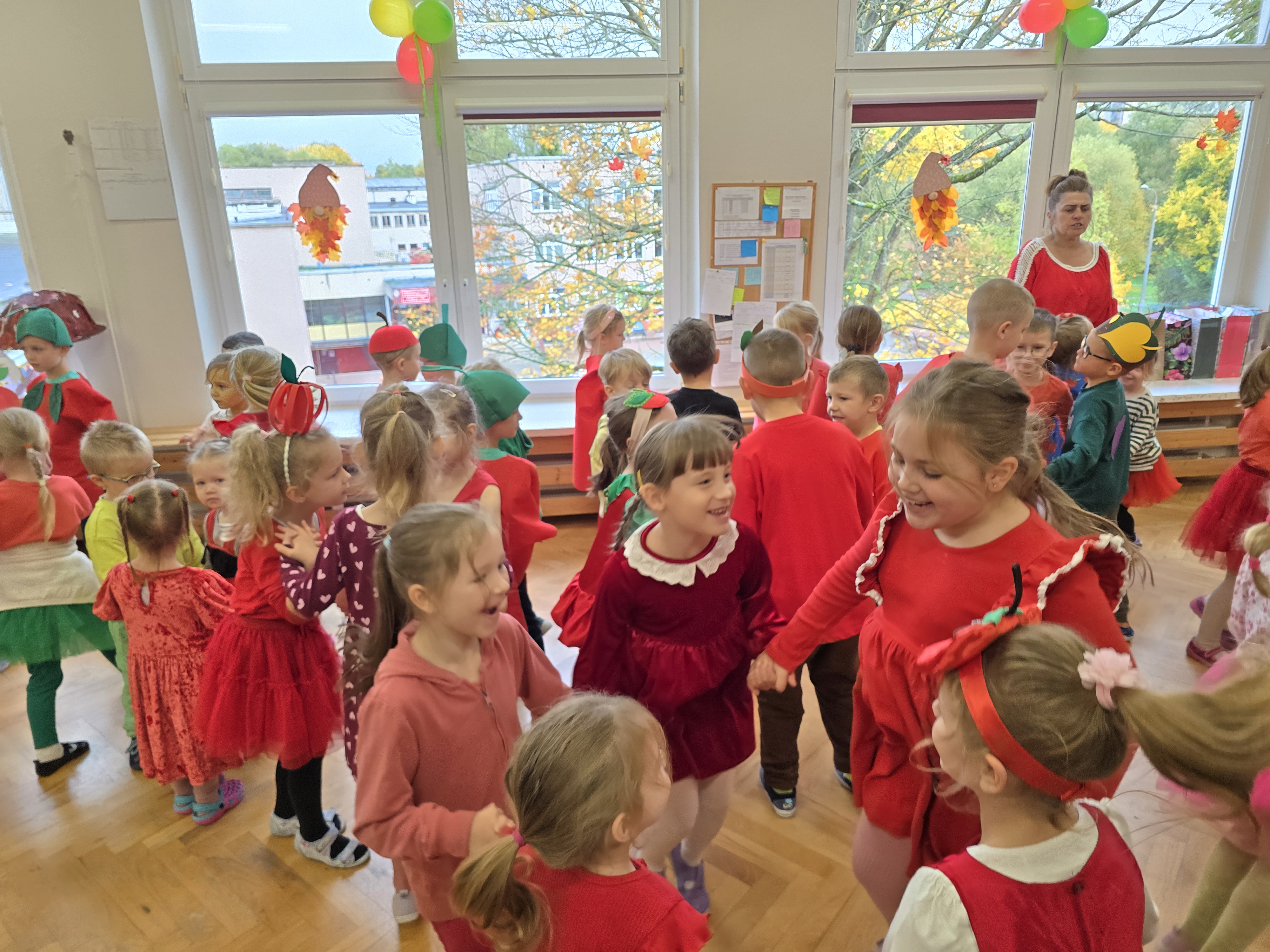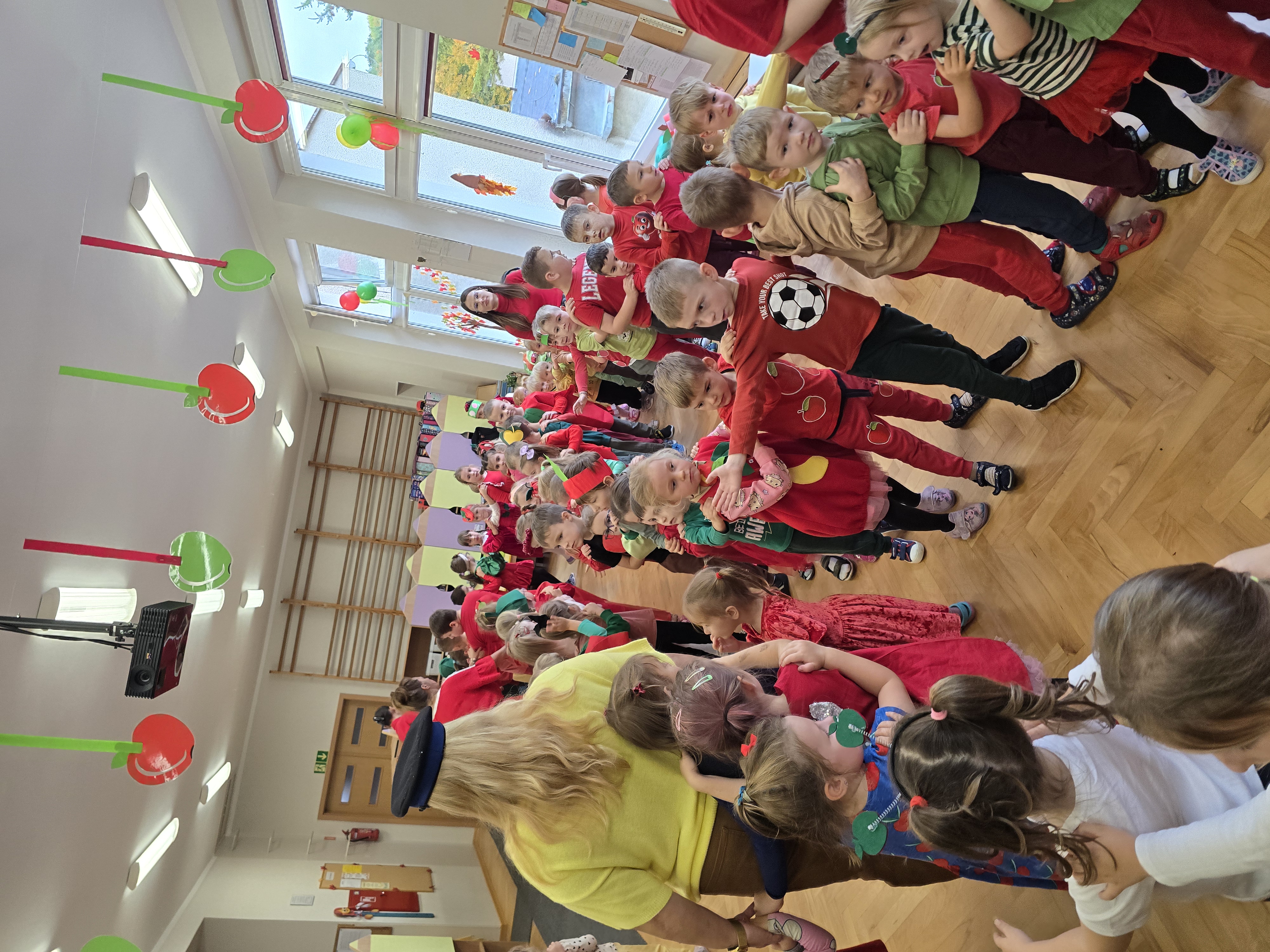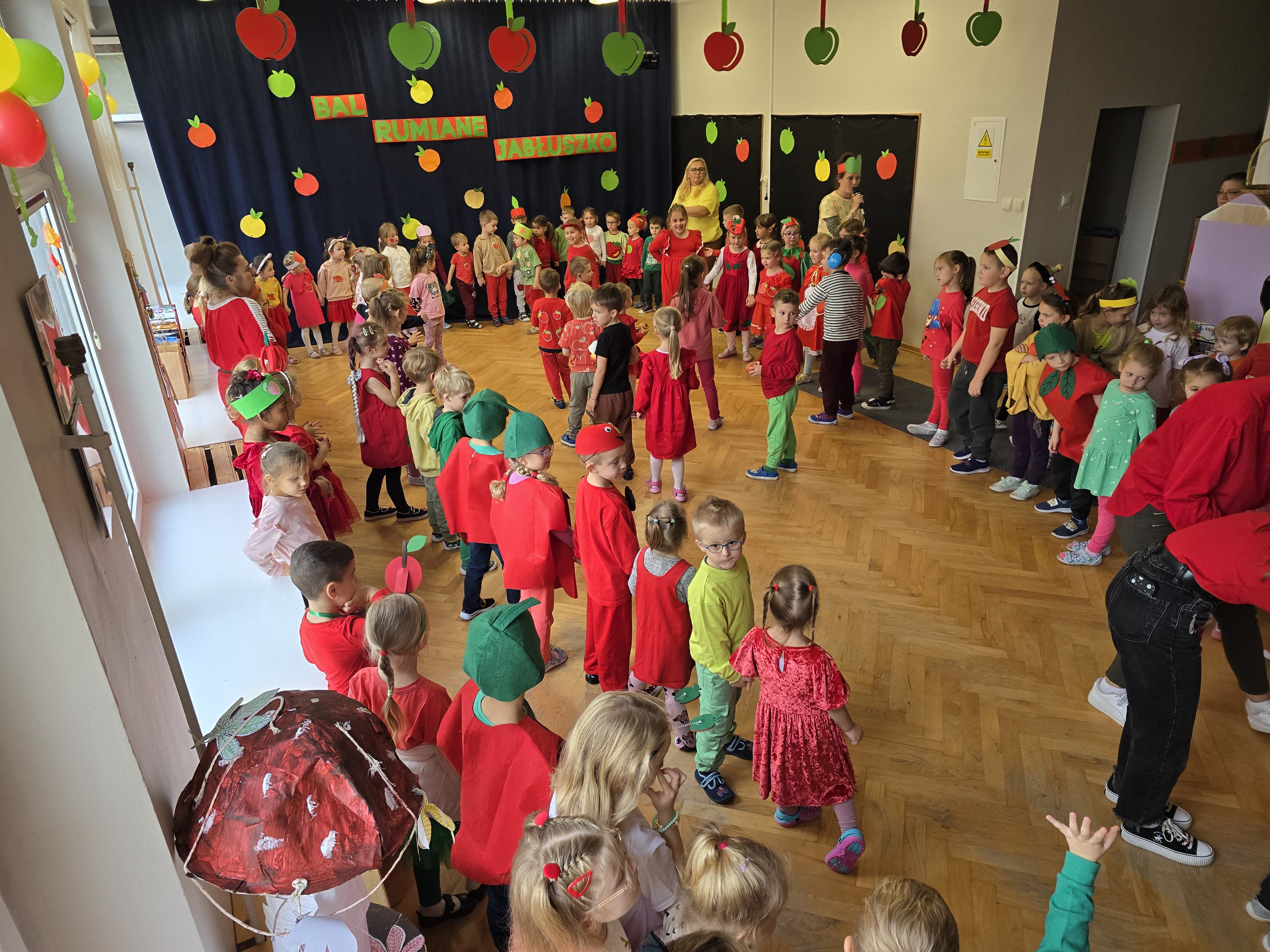 17 października w naszym przedszkolu odbył się kolorowy i radosny Bal „Rumiane Jabłuszko”, który wprowadził wszystkich w jesienny nastrój. Dzieci przyszły ubrane w przepiękne, pomysłowe stroje inspirowane jabłkami i barwami jesieni – w sali królowały czerwienie, zielenie i złociste odcienie.