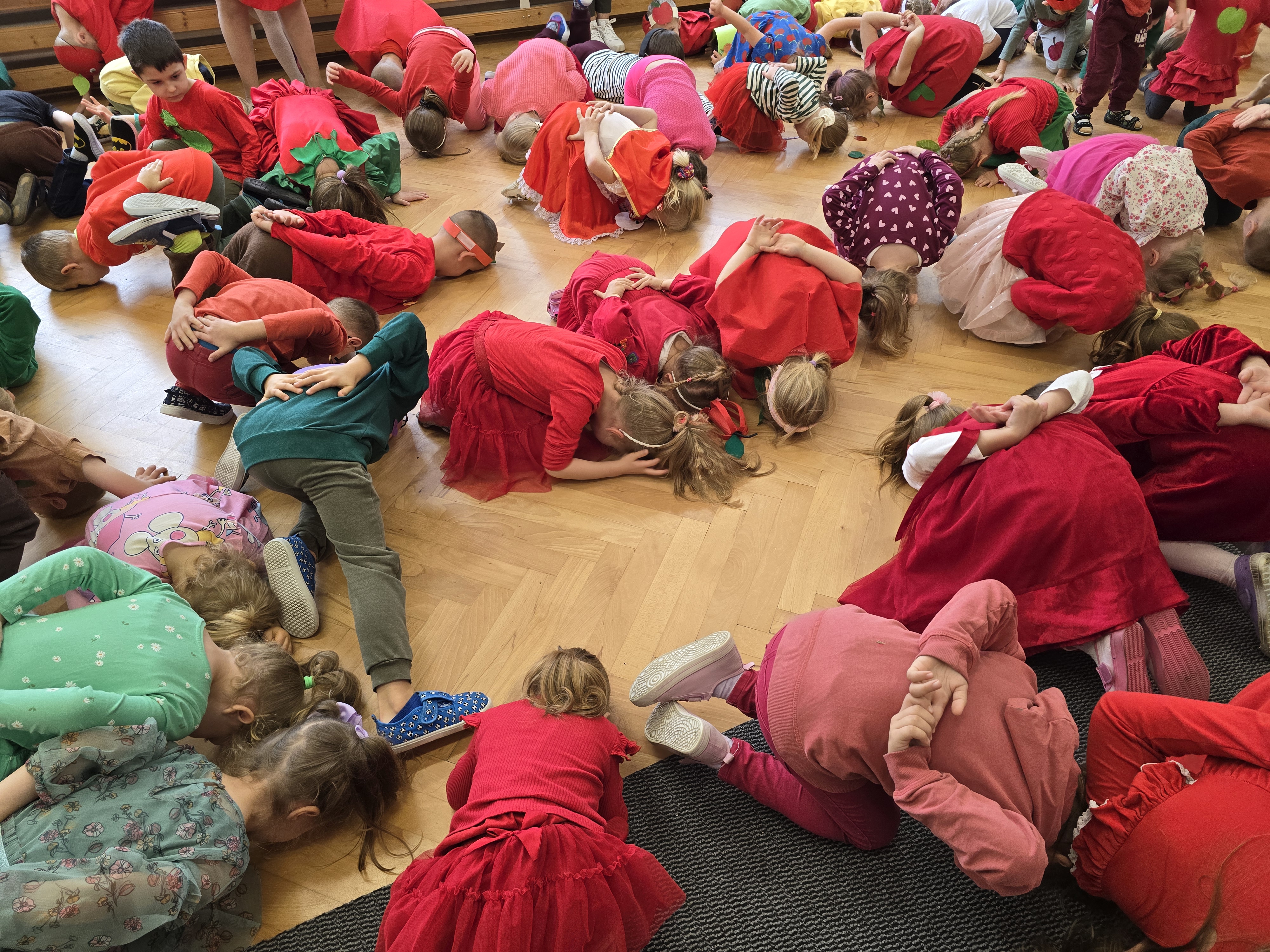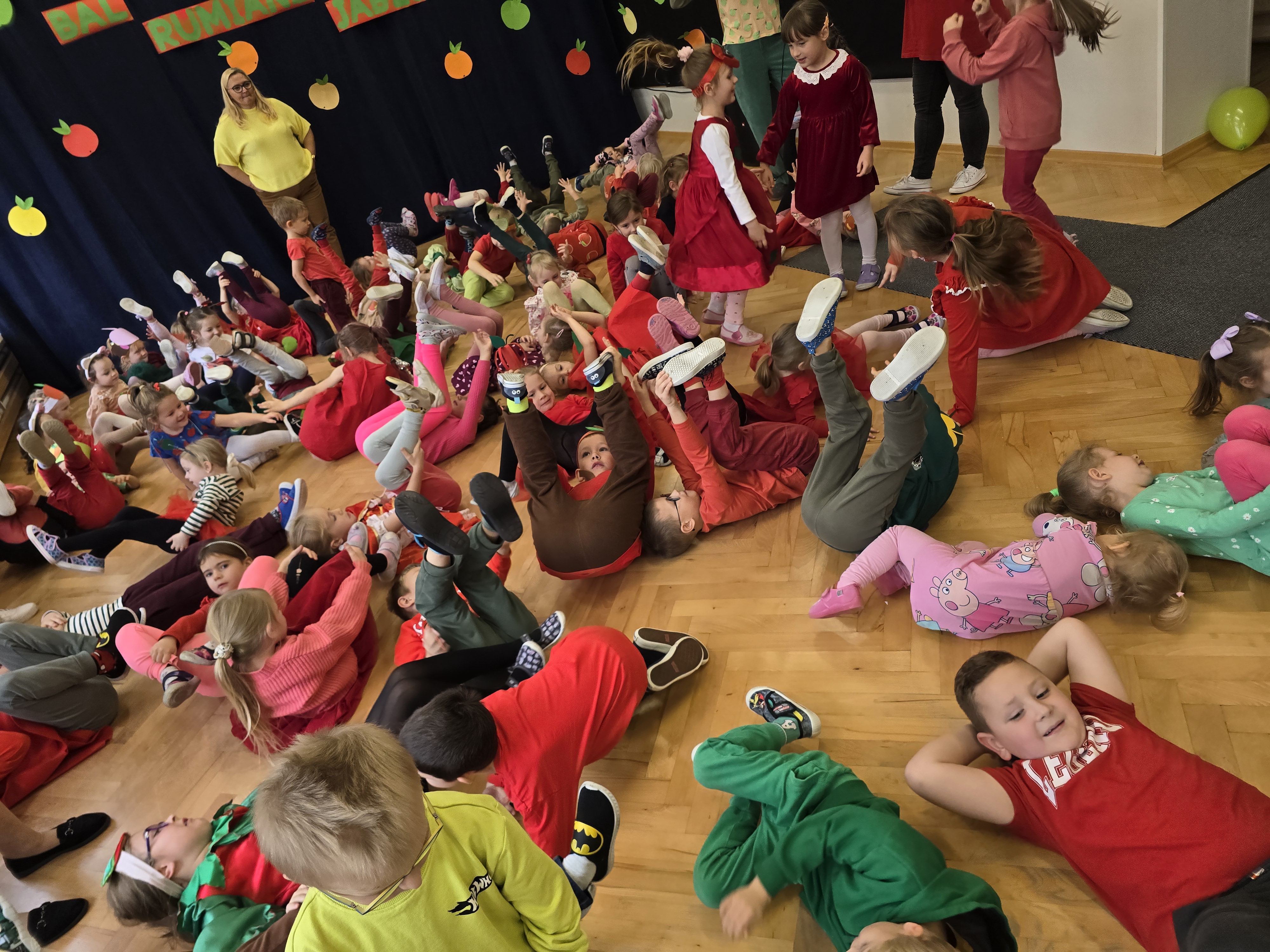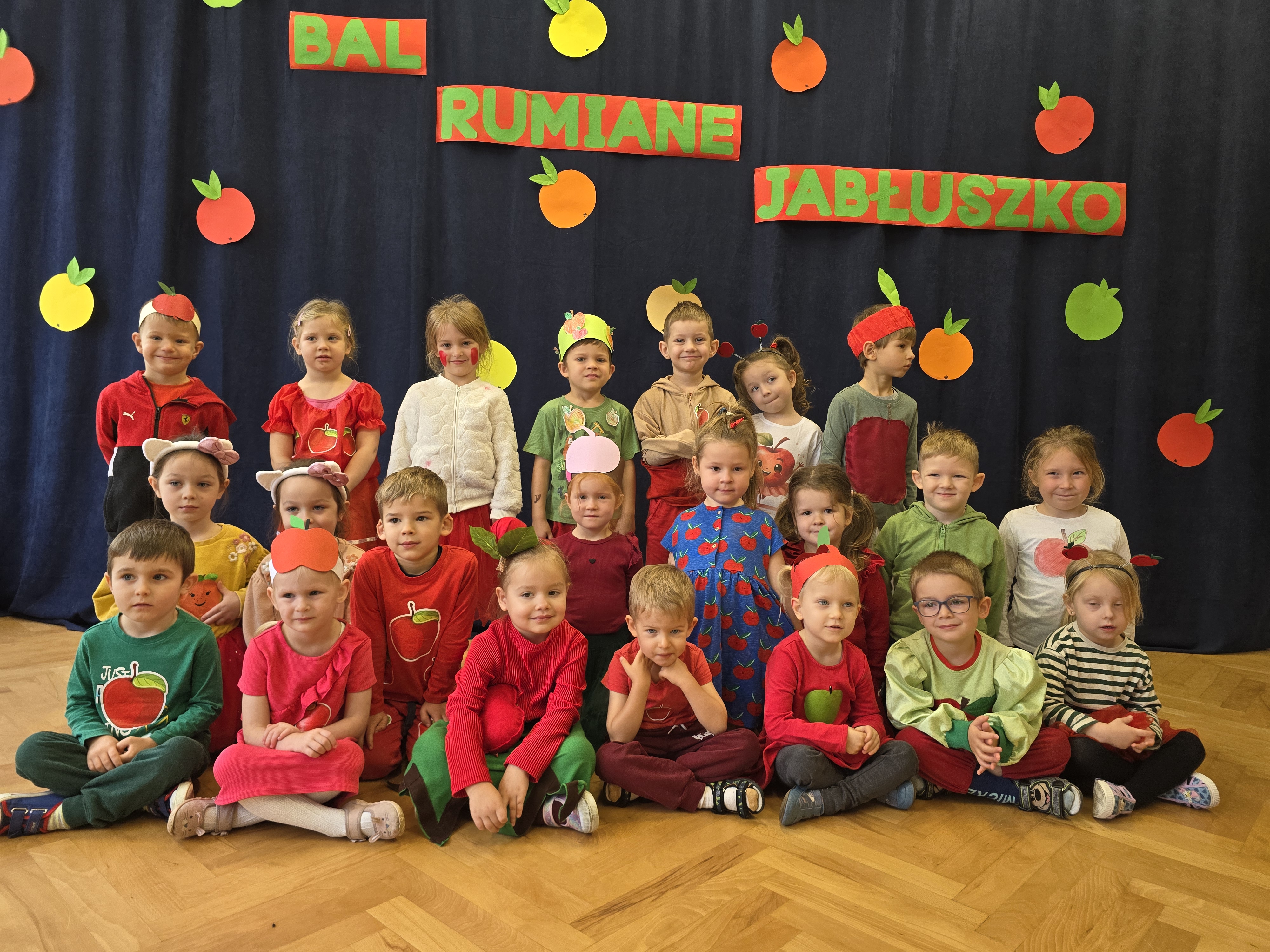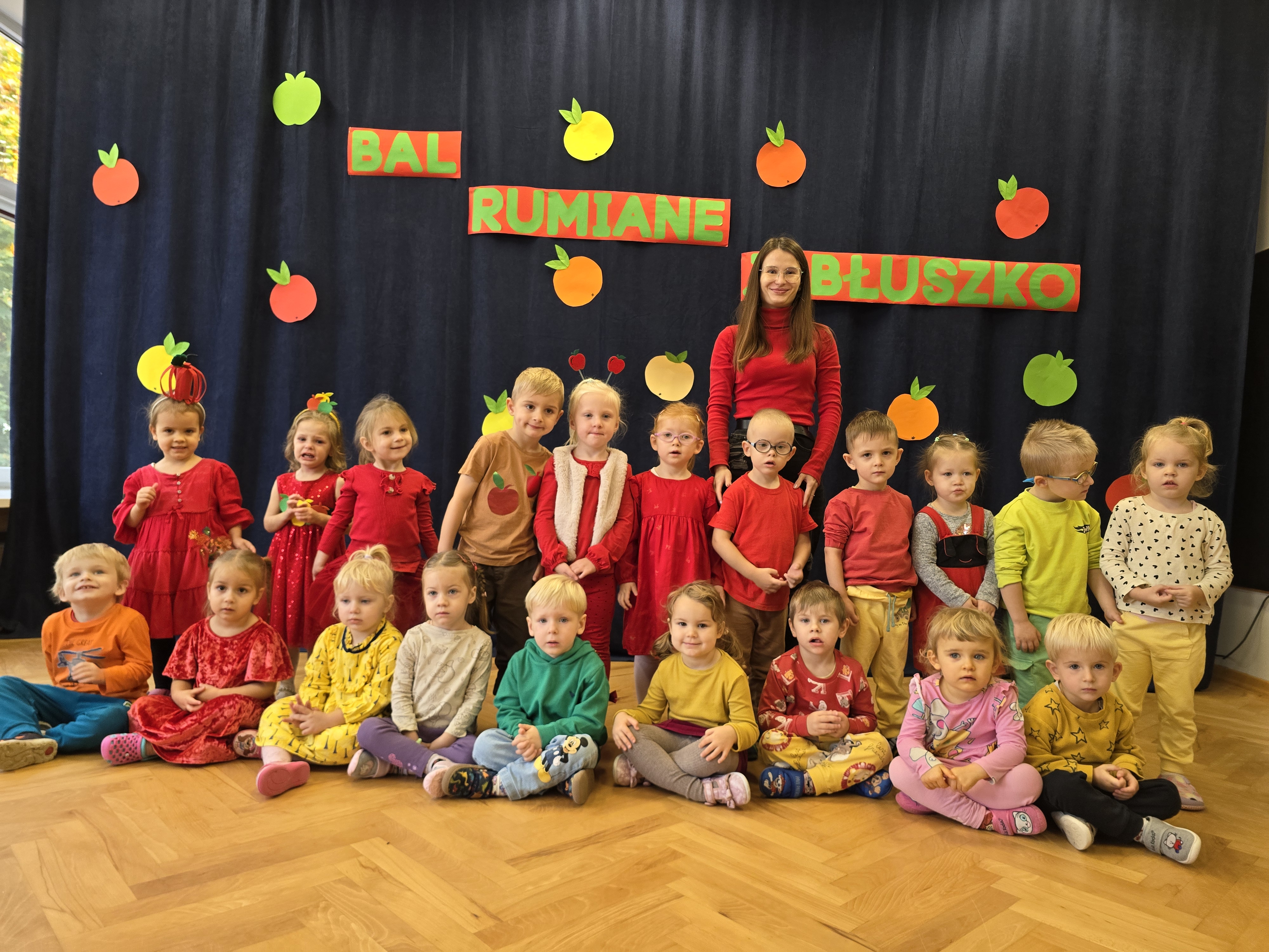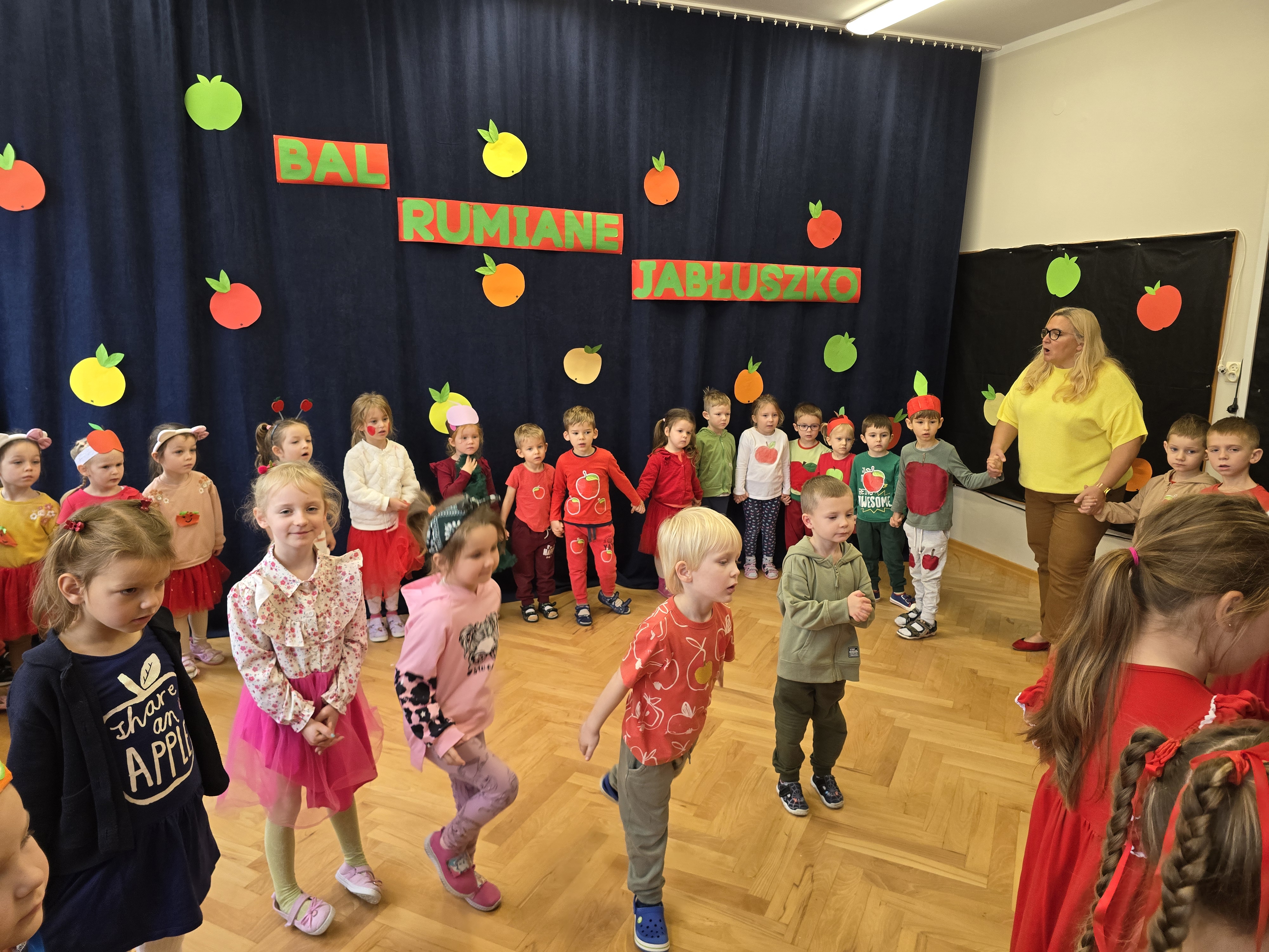 Bal „Rumiane Jabłuszko” był nie tylko okazją do wspólnej zabawy, ale też wspaniałą lekcją o pięknie jesieni, współpracy i radości płynącej z bycia razem. Dziękujemy wszystkim dzieciom i rodzicom za zaangażowanie oraz wspólnie spędzony, wyjątkowy dzień. :)