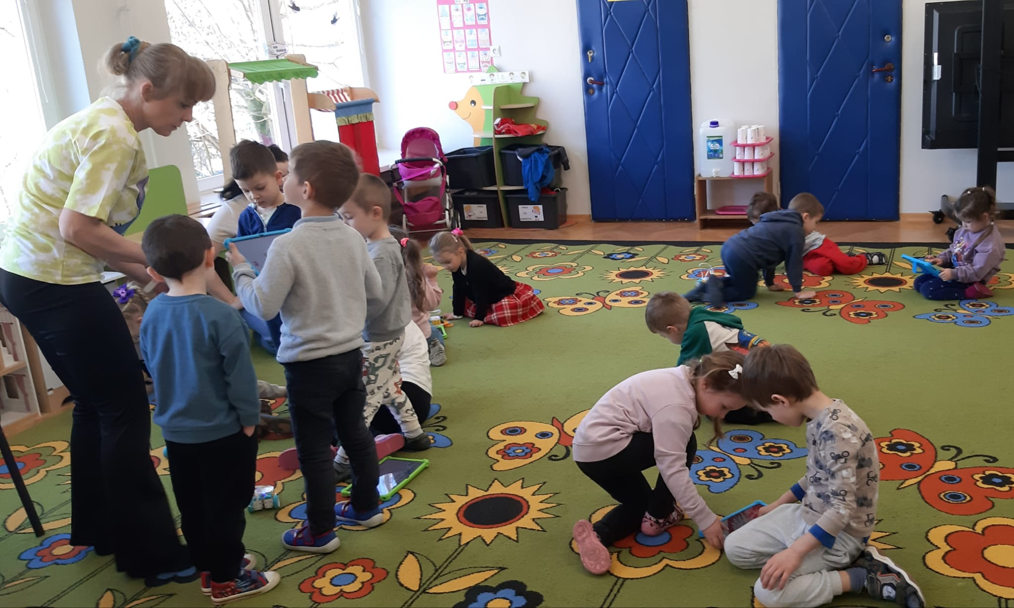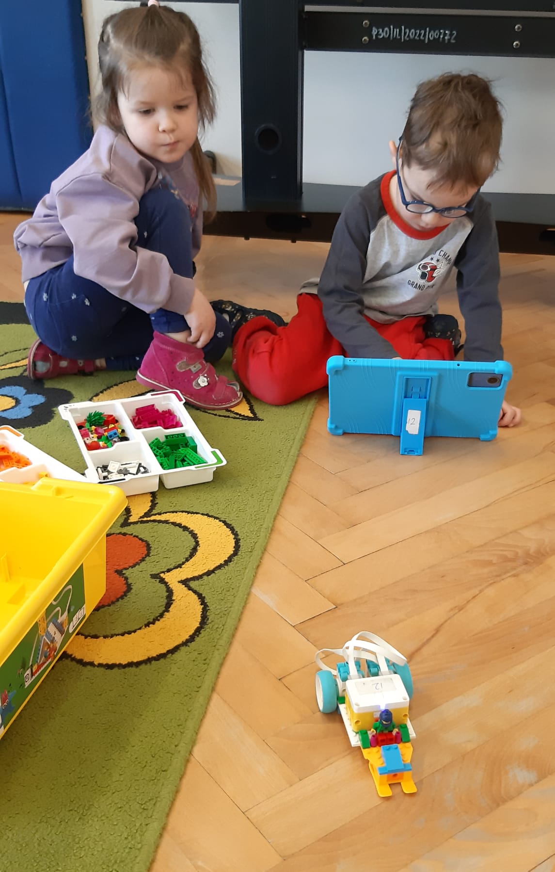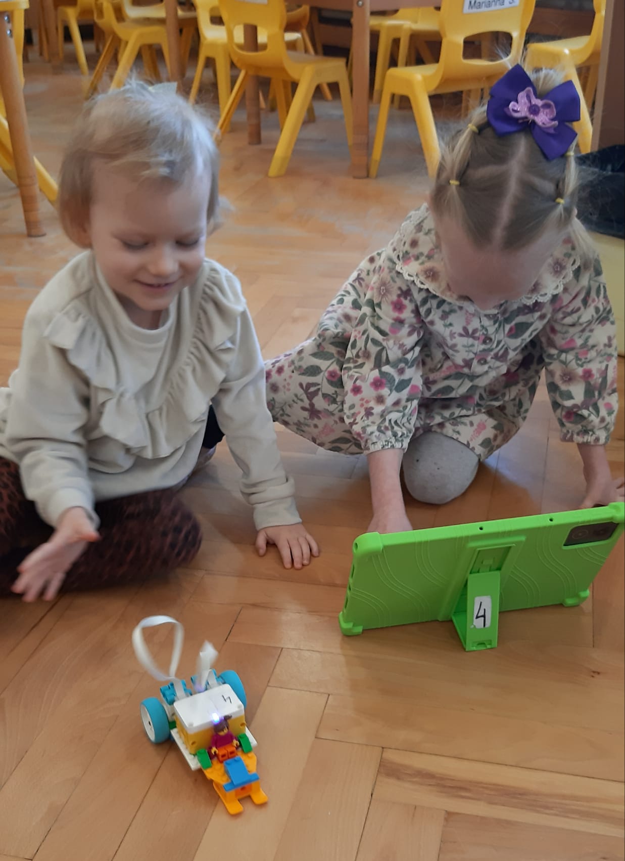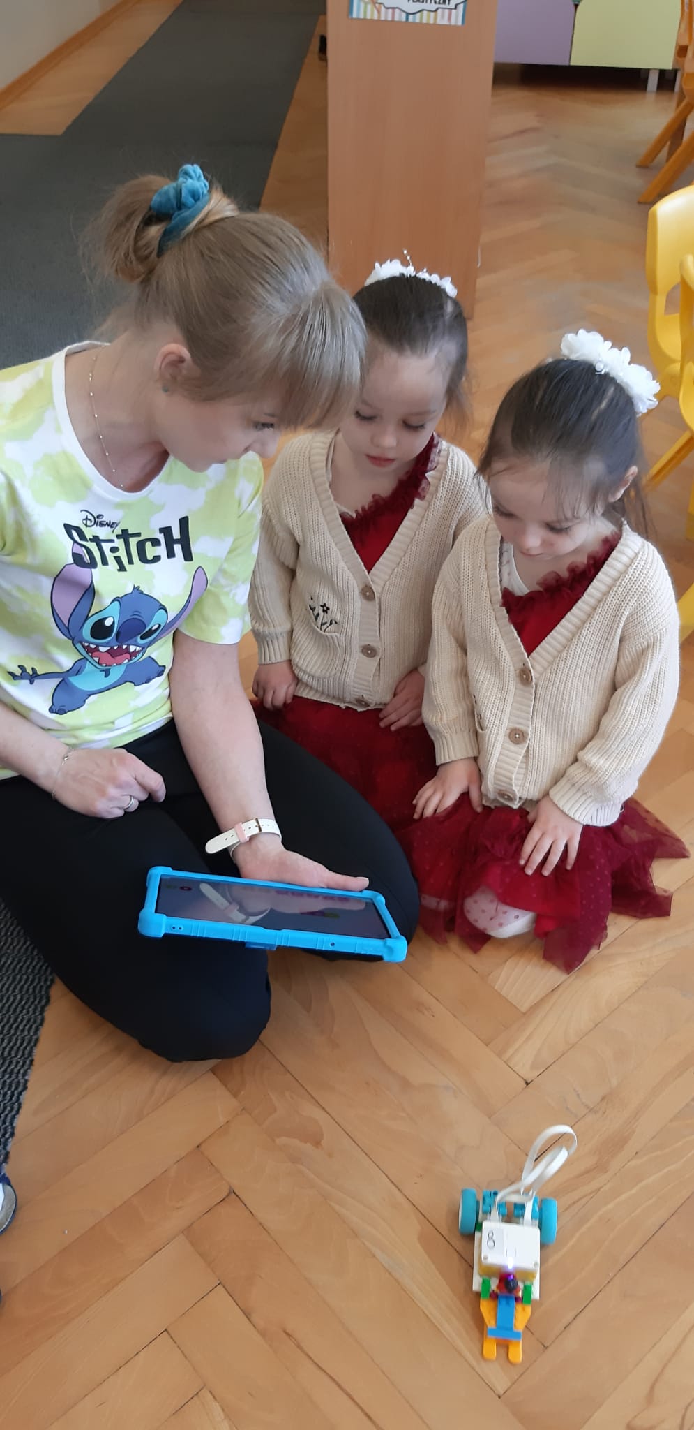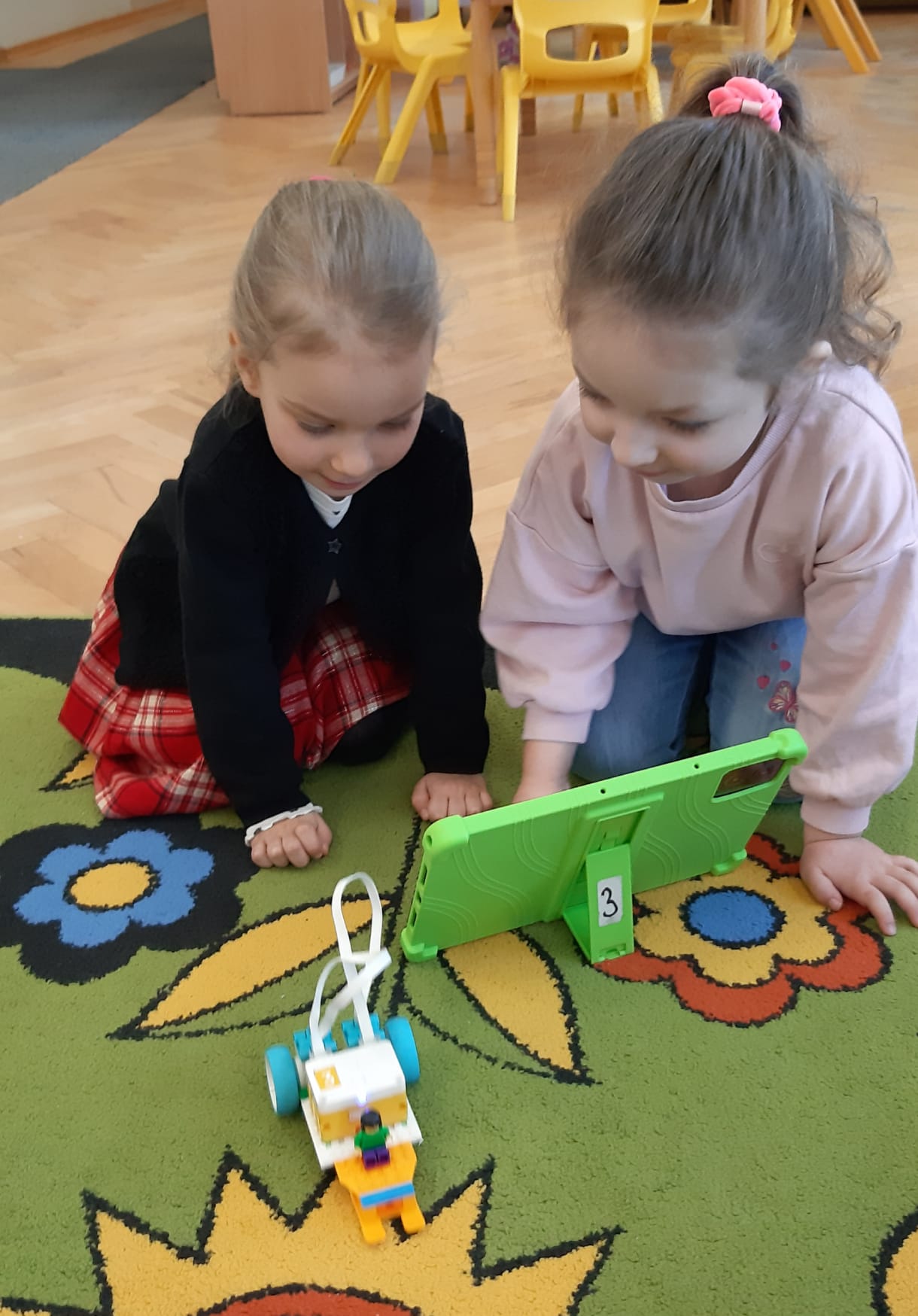 Przedszkolaki z ogromnym zaangażowaniem budowały różnorodne konstrukcje – powstawały domy, pojazdy, wieże, a także fantastyczne budowle stworzone według własnej wyobraźni. Wspólna zabawa klockami rozwijała kreatywność, wyobraźnię przestrzenną oraz umiejętność współpracy w grupie.