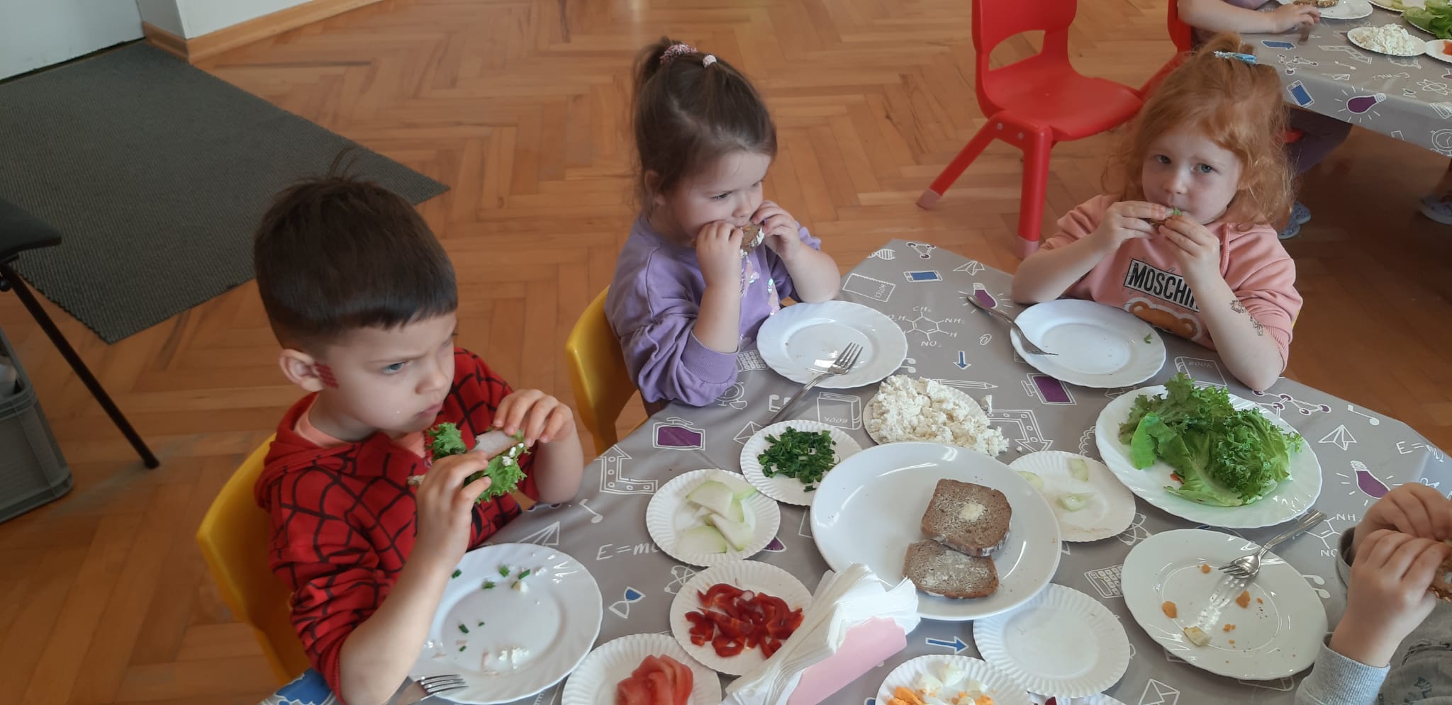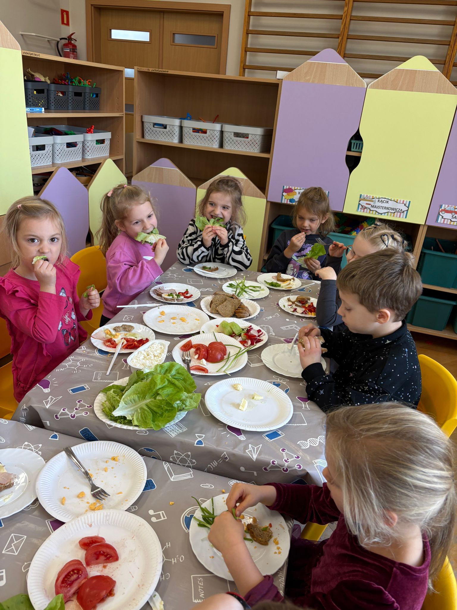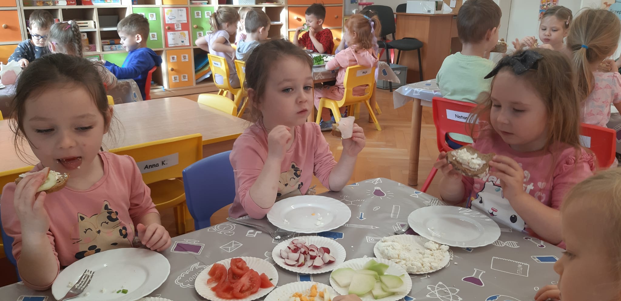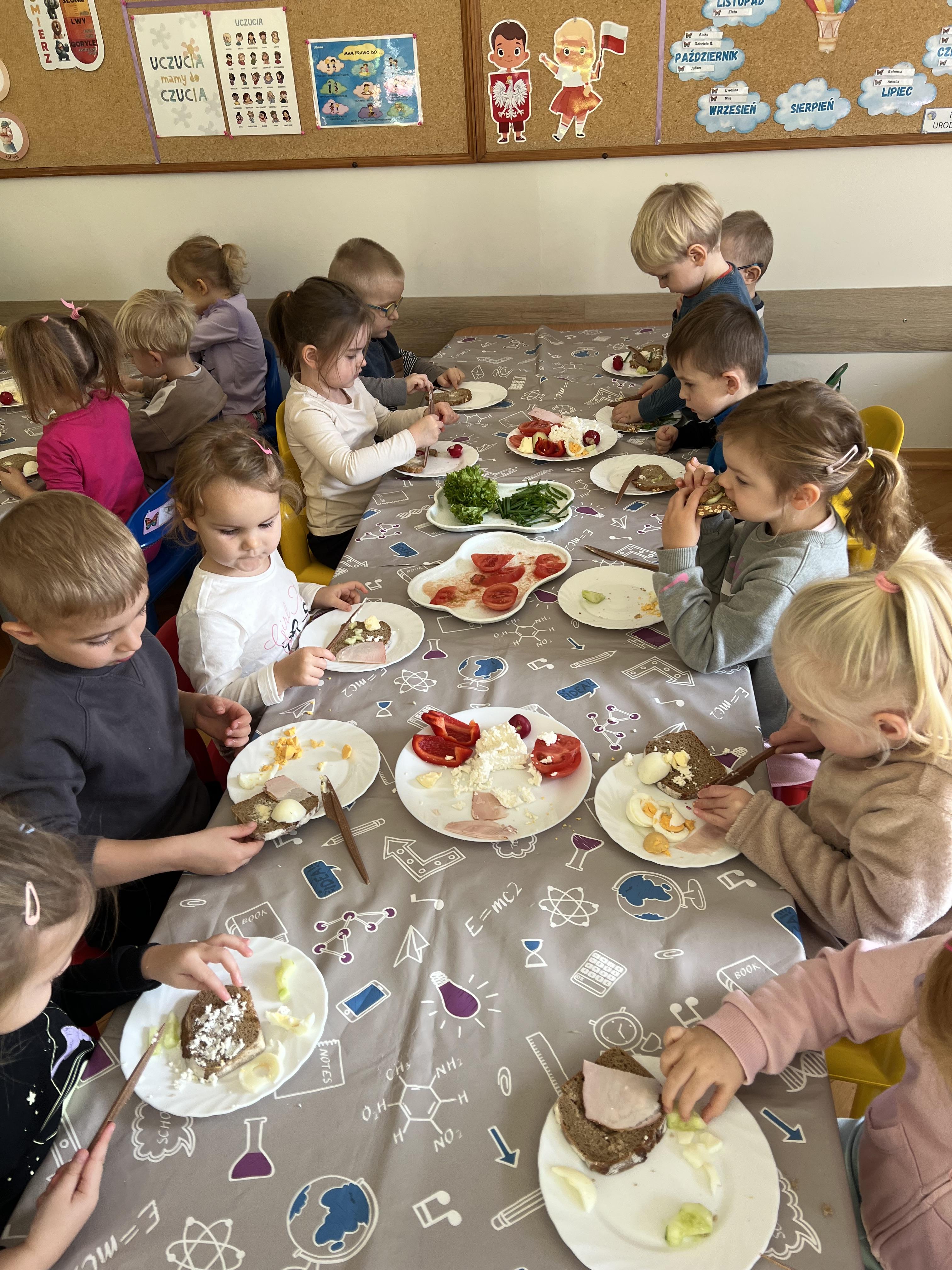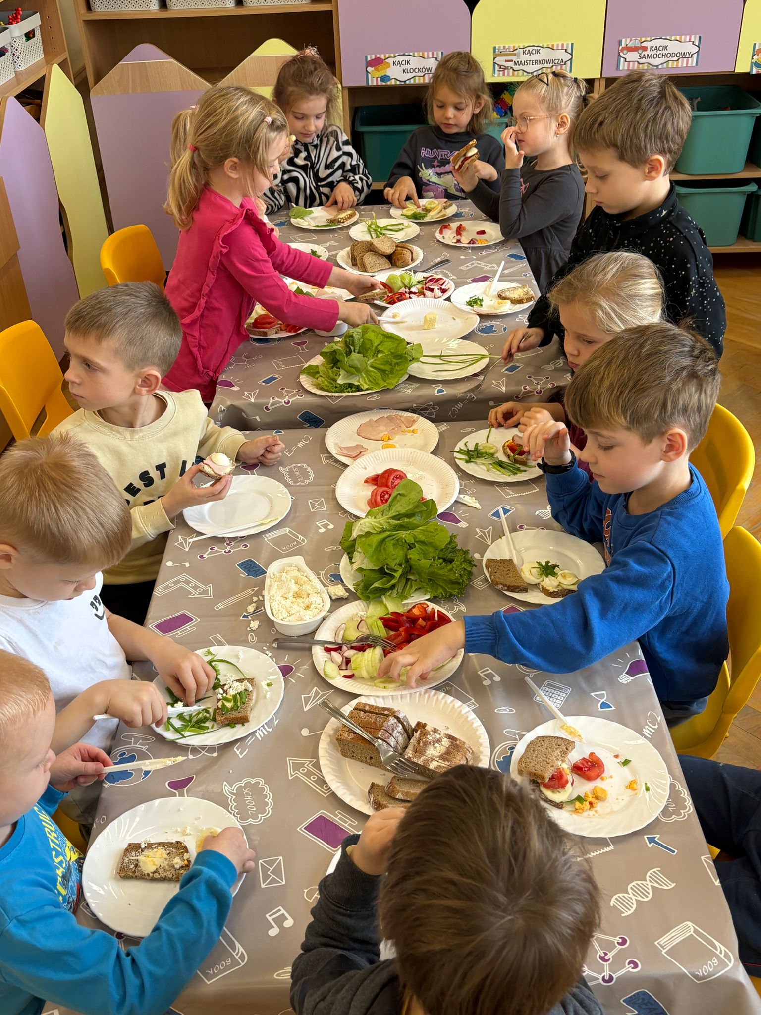 Nasze przedszkole brało udział w Dniu Zdrowego Śniadania, podczas którego dzieci wspólnie przygotowywały kolorowe i pełne witamin kanapki. Przedszkolaki uczyły się wybierać zdrowe produkty, samodzielnie komponując swoje posiłki. Dodatkowo wysłuchały ciekawej pogadanki dietetyka, który opowiedział im o znaczeniu zdrowego odżywiania i roli śniadania w codziennym funkcjonowaniu. To była smaczna i pouczająca lekcja zdrowych nawyków.