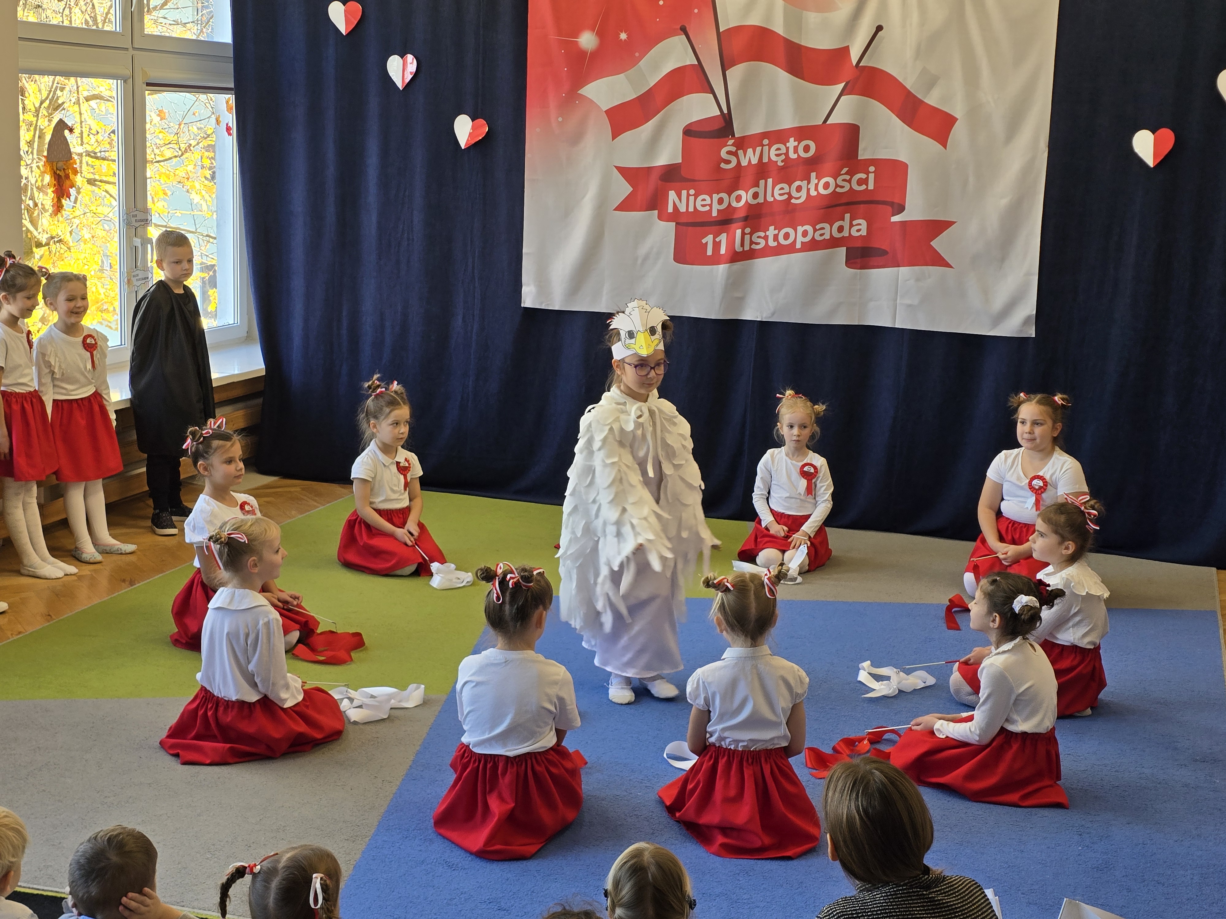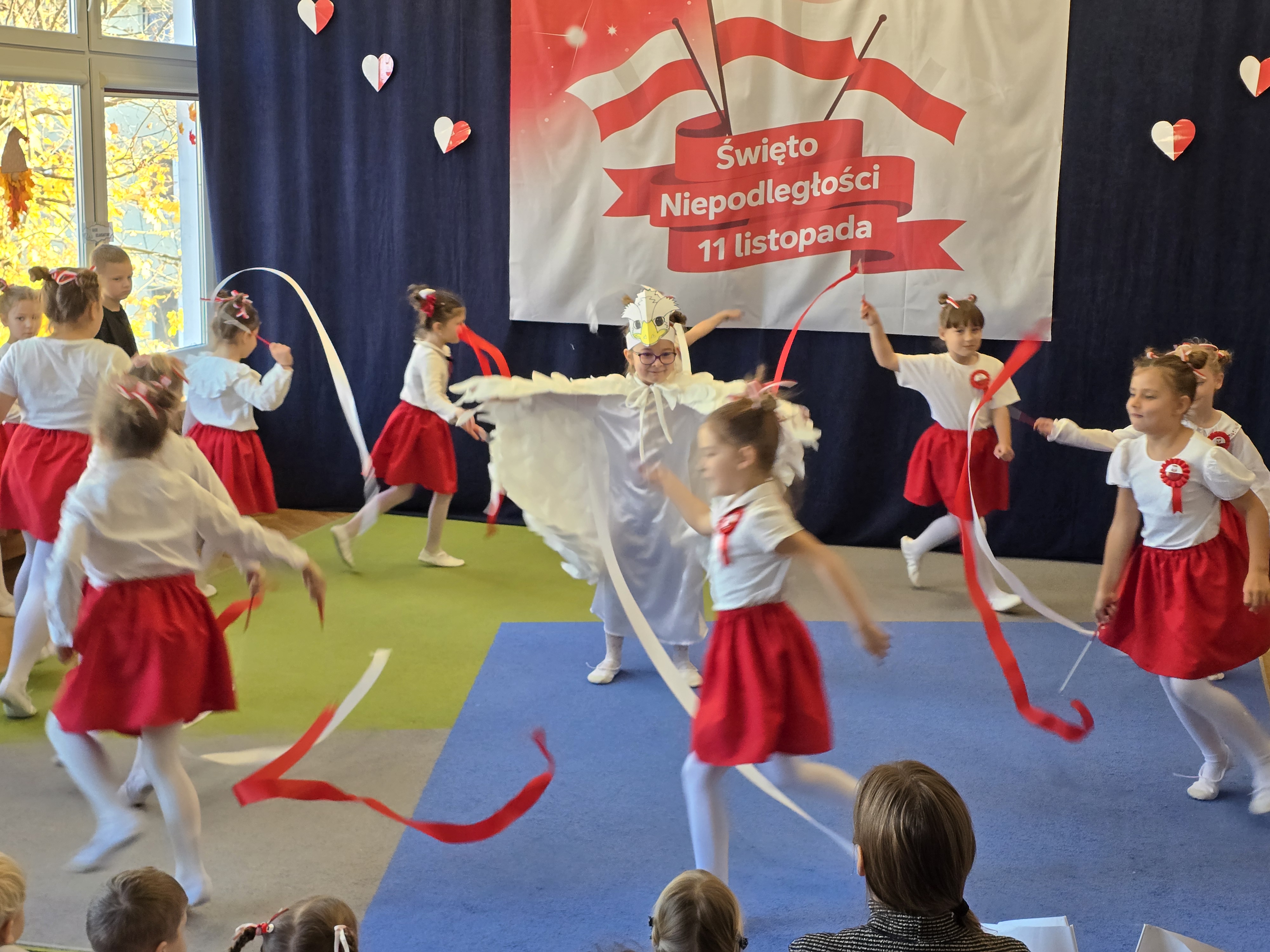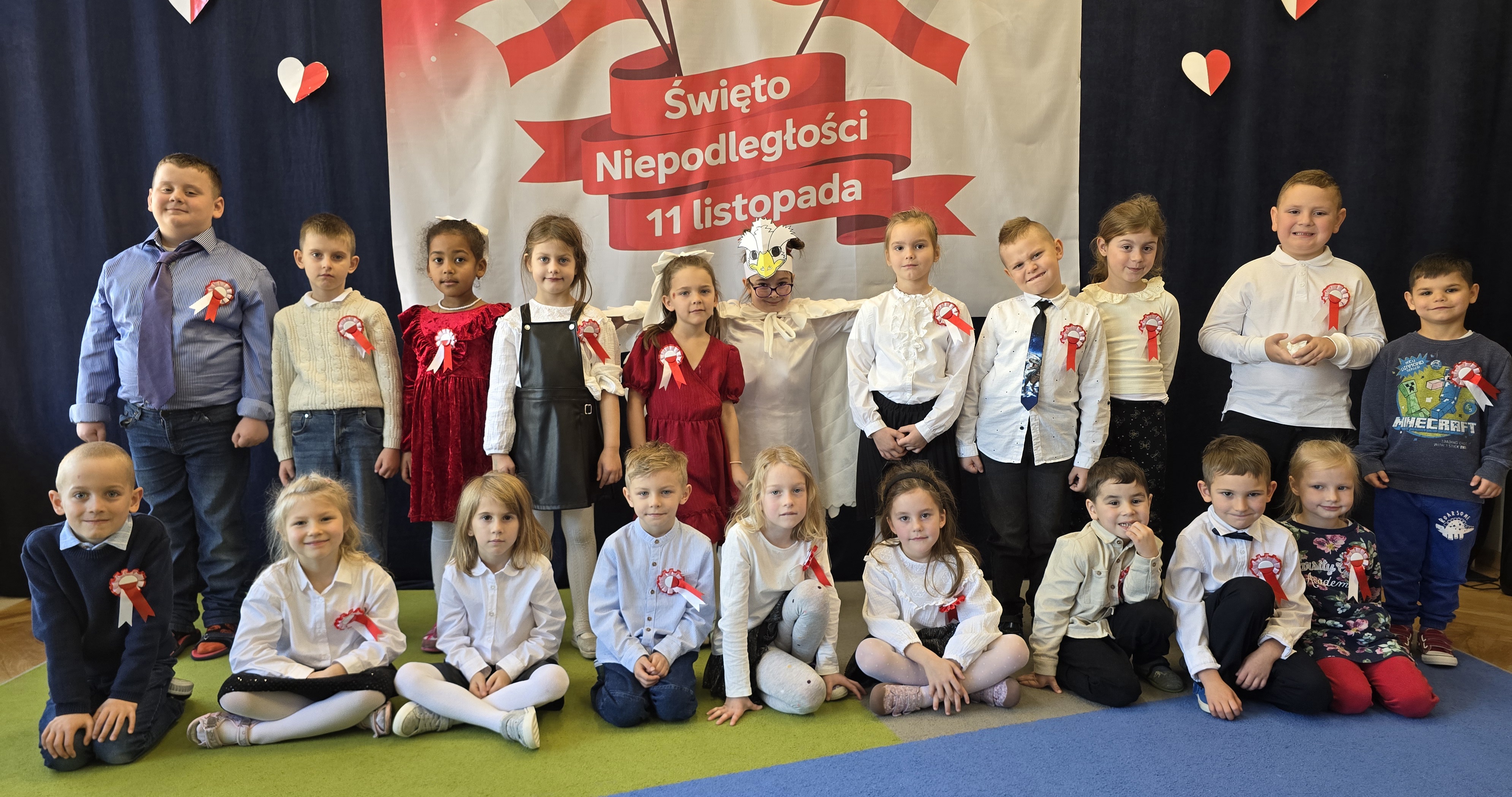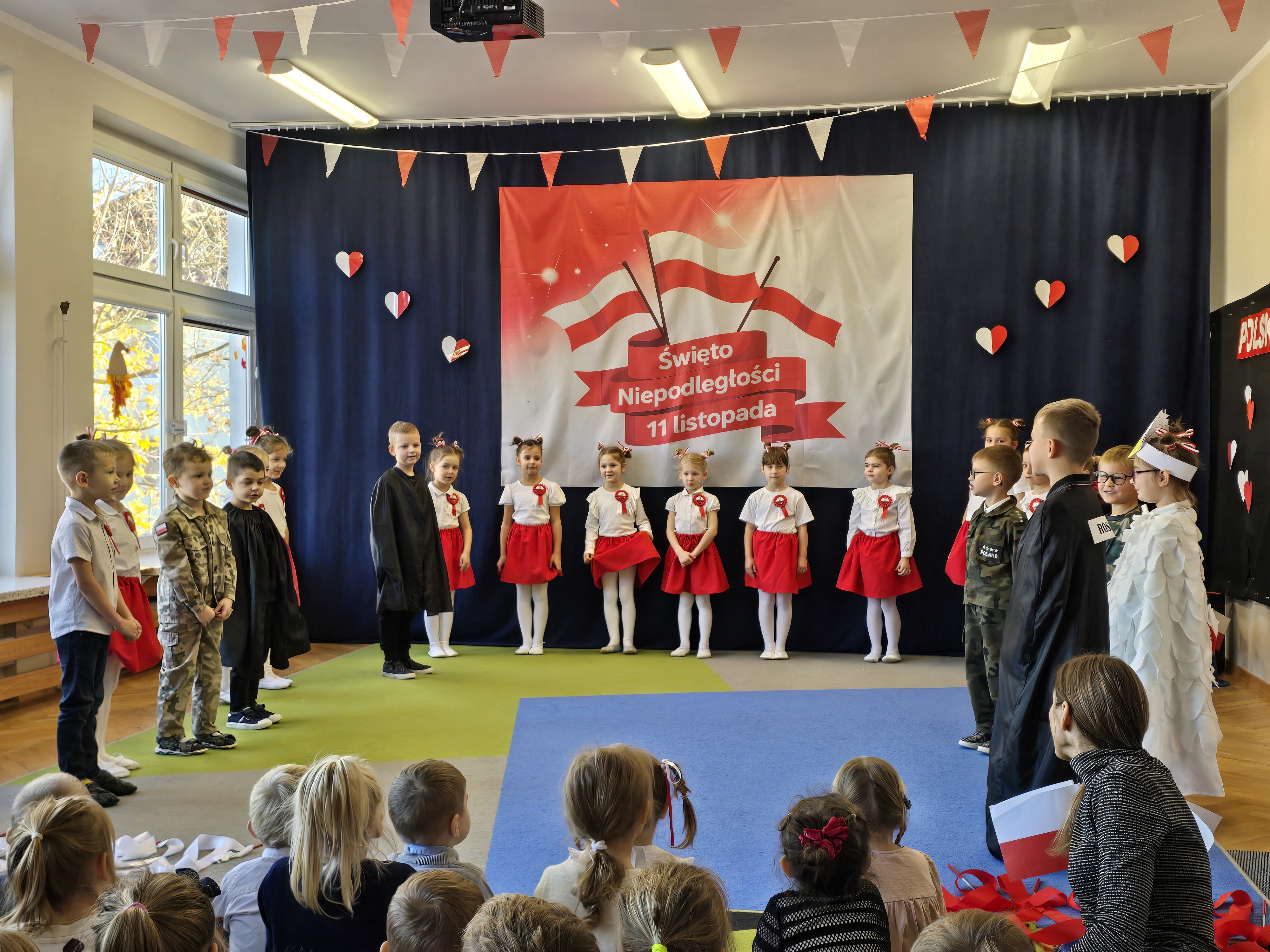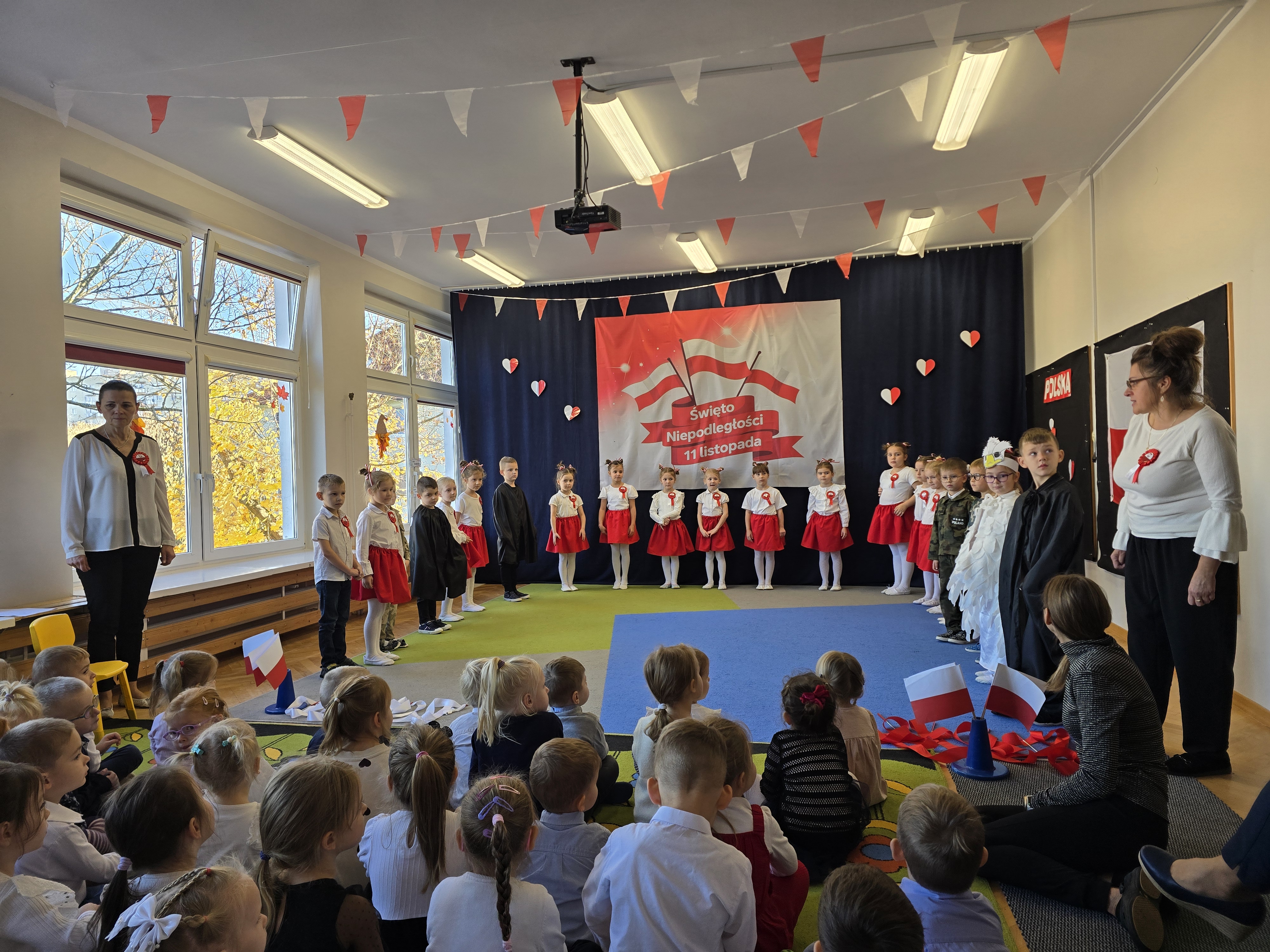 Dnia 7 listopada 2025 roku obchodziliśmy Święto Niepodległości. Dzieci ubrane w biało-czerwone barwy wspólnie odśpiewały hymn oraz obejrzały występ artystyczny przygotowany przez grupę V. Cała uroczystość przebiegła w radosnej, podniosłej atmosferze, podkreślając znaczenie wolności i miłości do ojczyzny.