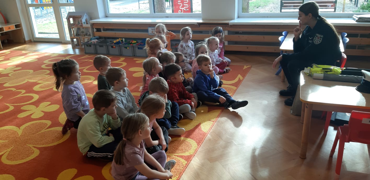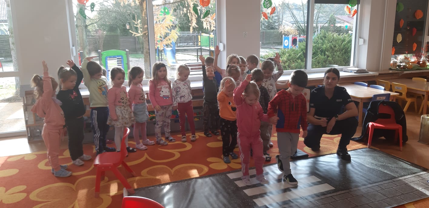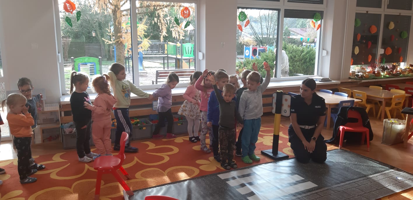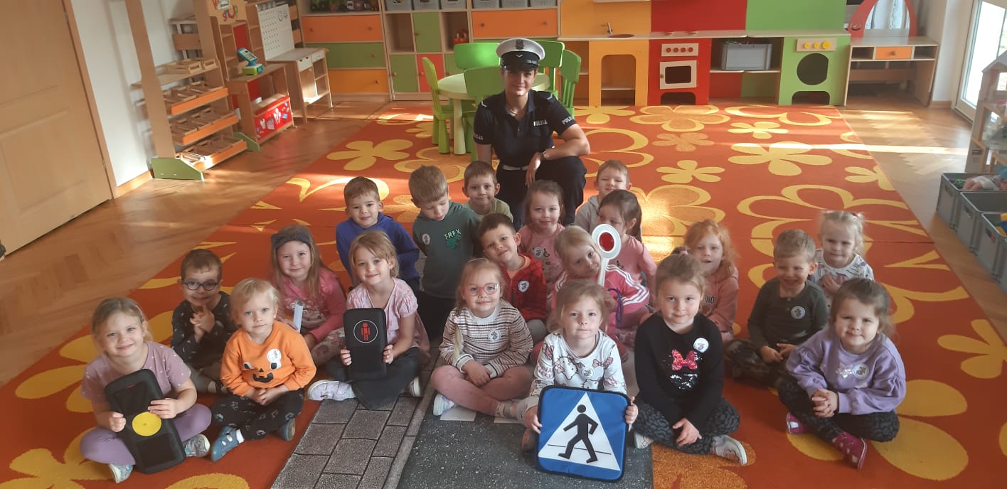 14 listopada w naszym przedszkolu odbyło się spotkanie z policjantką, która przeprowadziła pouczające zajęcia dla dzieci na temat zasad ruchu drogowego. Przedszkolaki dowiedziały się, jak bezpiecznie przechodzić przez ulicę, jakie znaczenie mają sygnalizacja świetlna i znaki drogowe oraz w jak sposób zachowywać się w ruchu drogowym. Spotkanie odbyło się w formie zabaw i krótkich ćwiczeń praktycznych, co pozwoliło dzieciom lepiej zapamiętać zasady bezpieczeństwa. To było ciekawe i bardzo ważne doświadczenie, które uczyło odpowiedzialności i ostrożności na drodze.