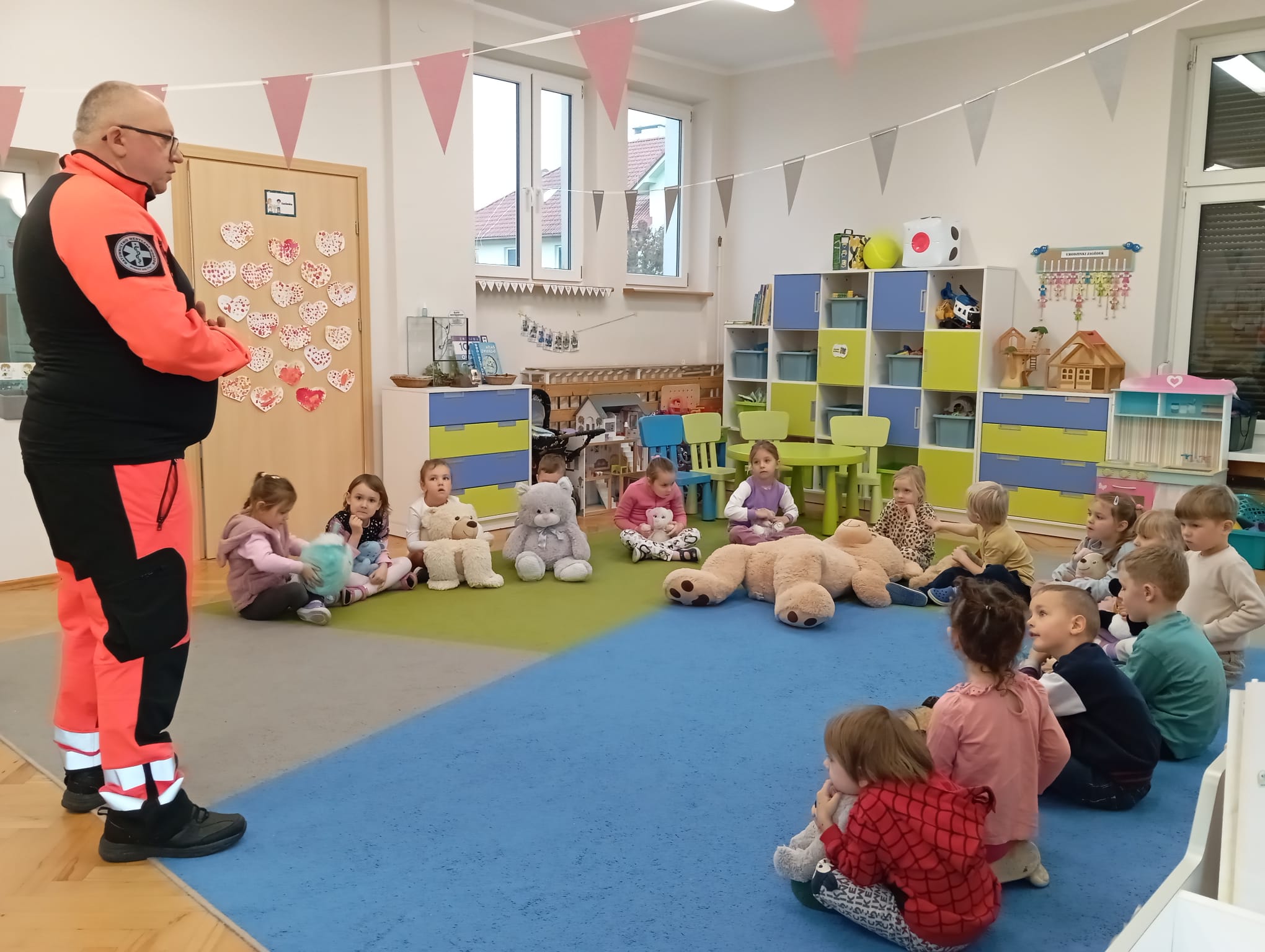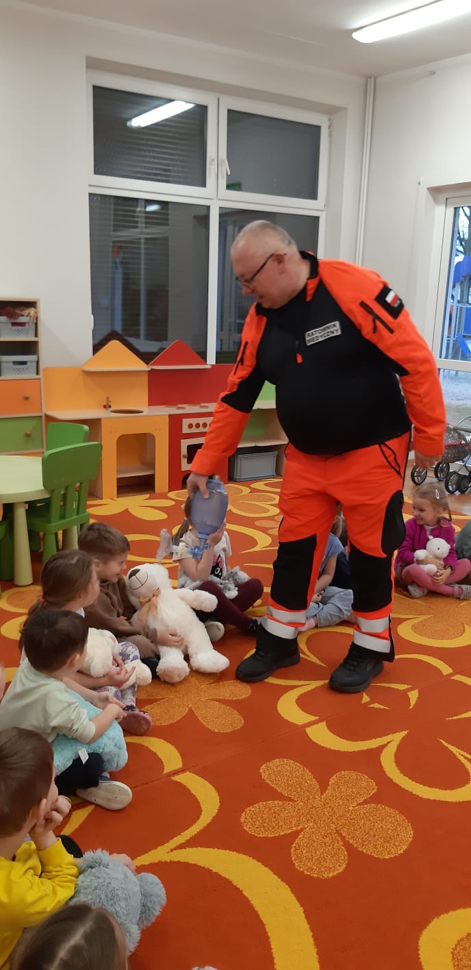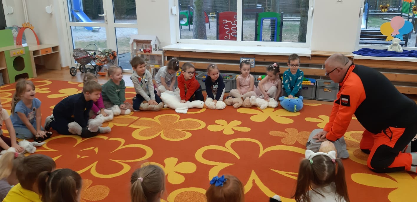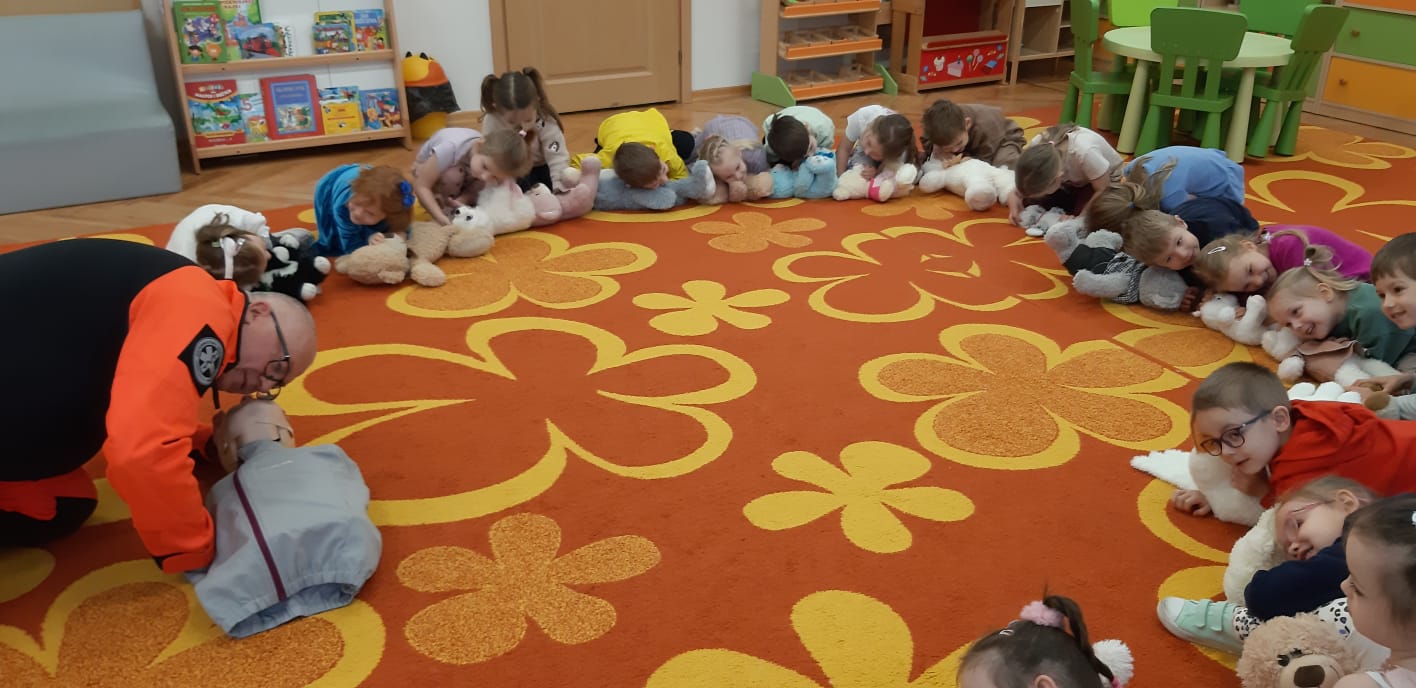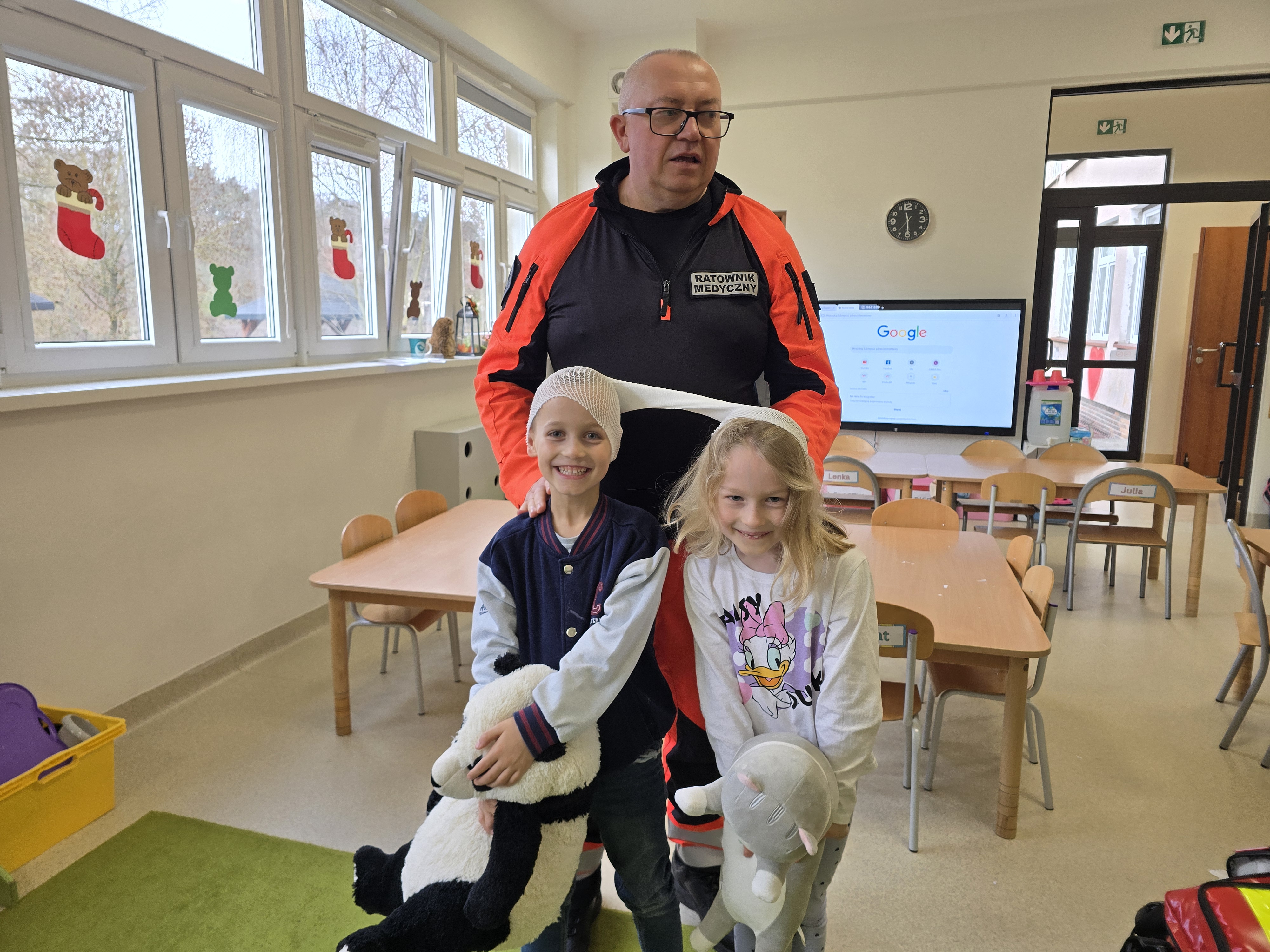 W naszym przedszkolu odbyły się zajęcia z pierwszej pomocy prowadzone przez ratownika medycznego. Dzieci uczyły się, jak pomagać potrzebującym, wykorzystując w ćwiczeniach swoje pluszowe misie. Przedszkolaki poznawały podstawowe zasady udzielania pierwszej pomocy. Zajęcia były pełne zabawy i praktycznych ćwiczeń, dzięki czemu dzieci w przystępny sposób zdobyły istotną wiedzę o ratowaniu życia.