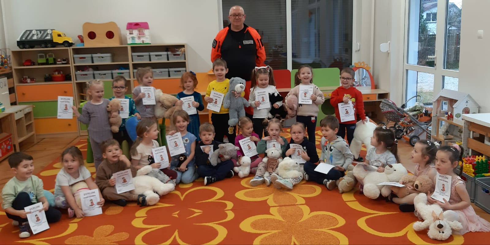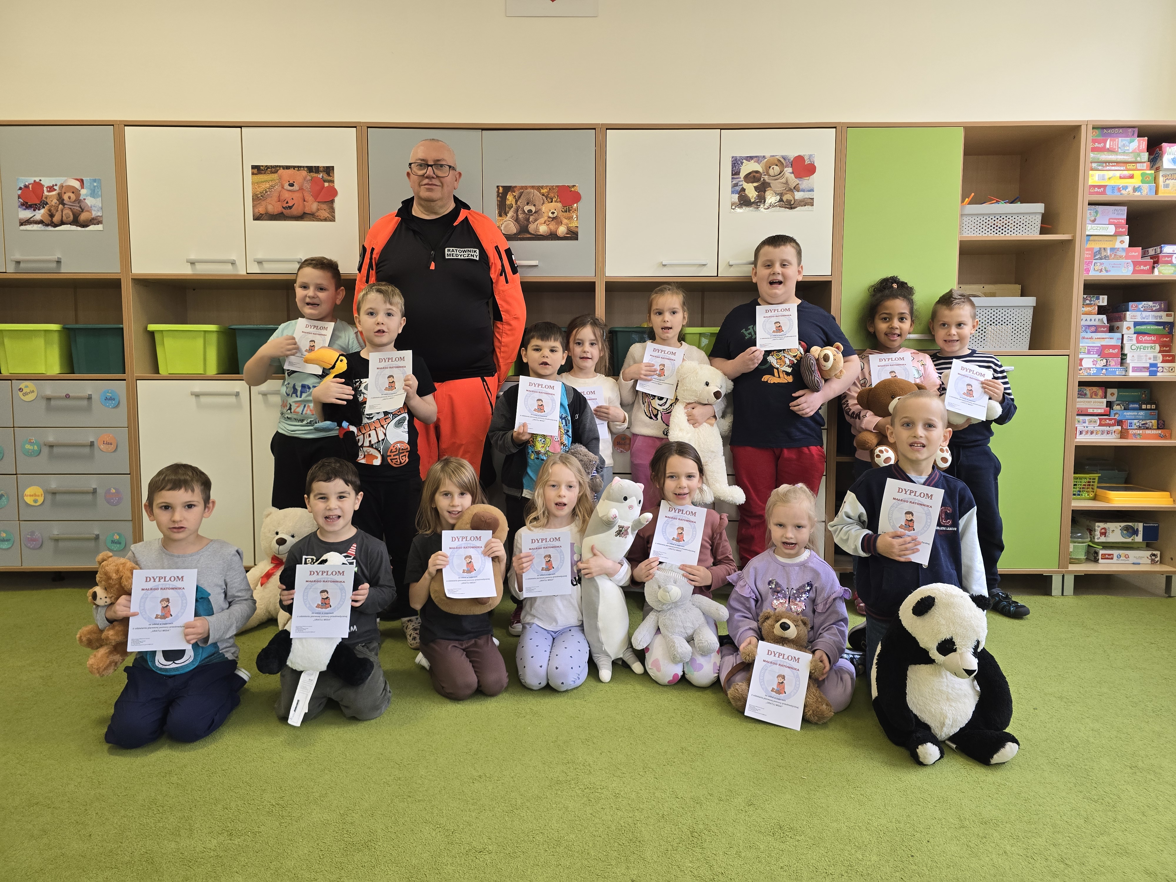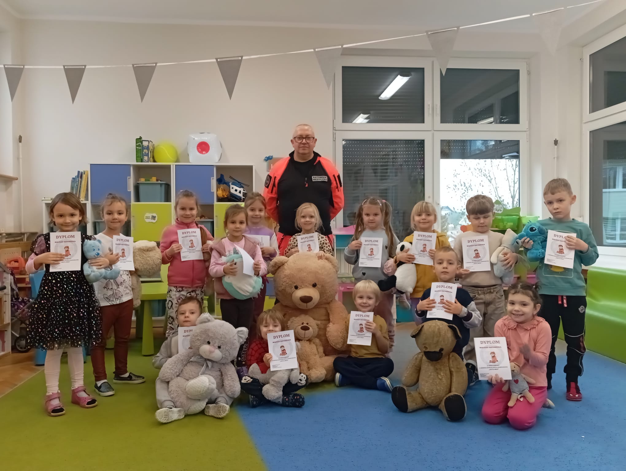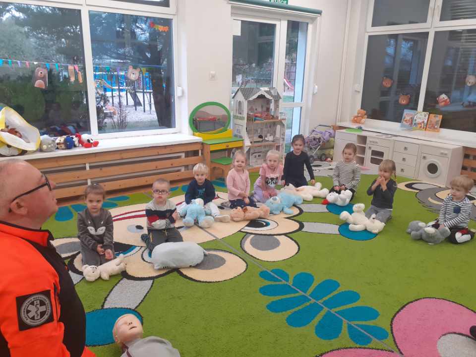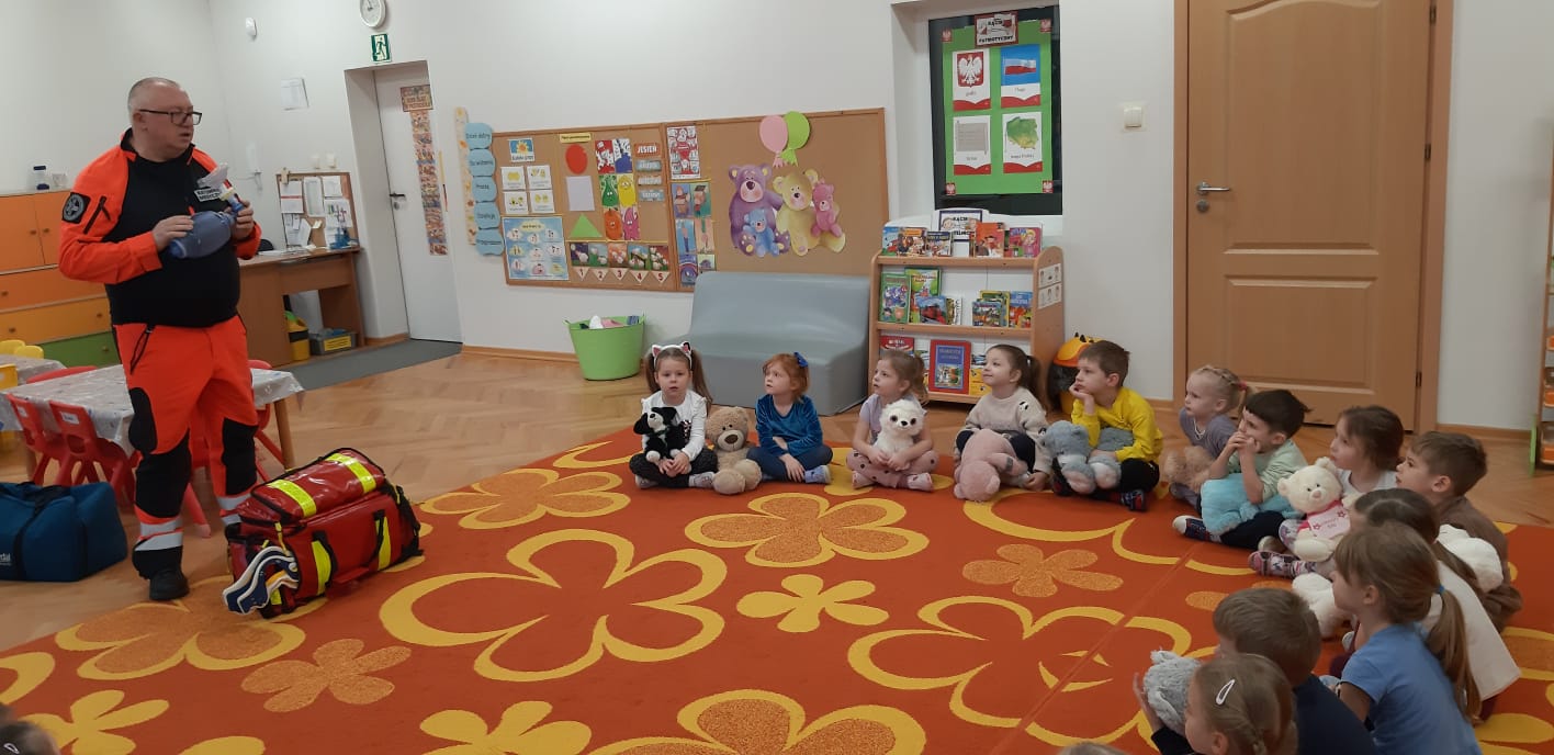 W naszym przedszkolu odbyły się zajęcia z pierwszej pomocy prowadzone przez ratownika medycznego. Dzieci uczyły się, jak pomagać potrzebującym, wykorzystując w ćwiczeniach swoje pluszowe misie. Przedszkolaki poznawały podstawowe zasady udzielania pierwszej pomocy. Zajęcia były pełne zabawy i praktycznych ćwiczeń, dzięki czemu dzieci w przystępny sposób zdobyły istotną wiedzę o ratowaniu życia.