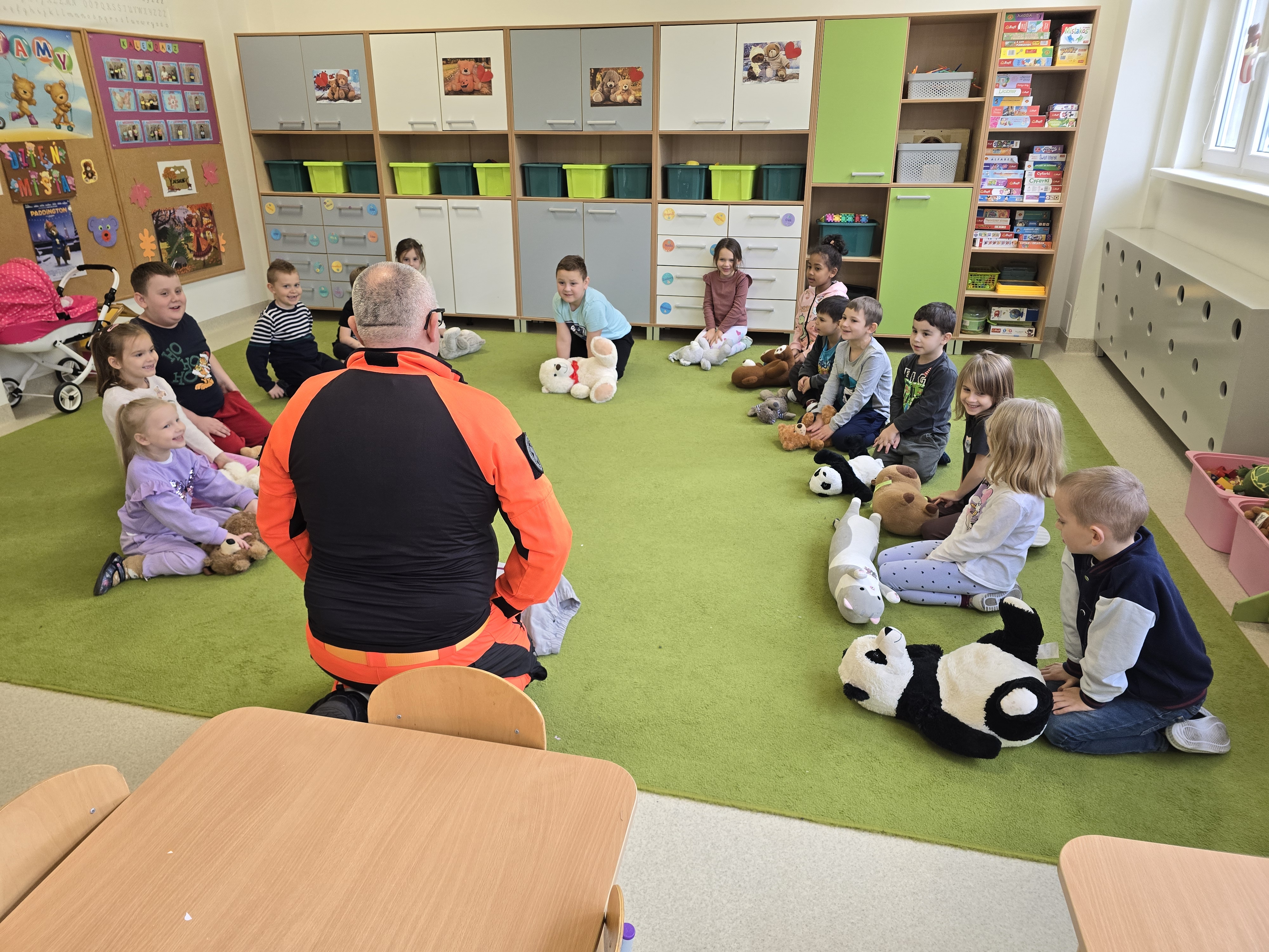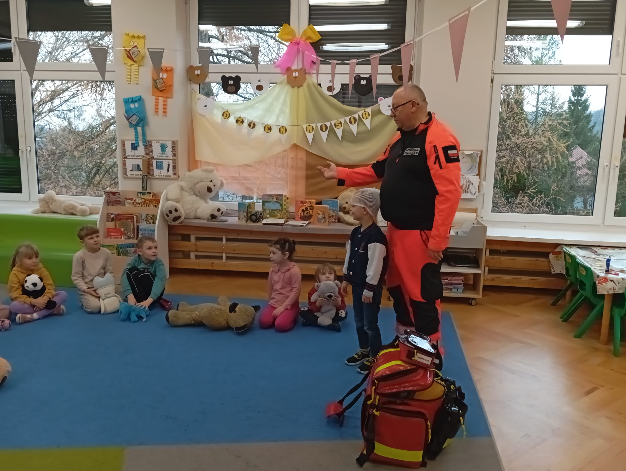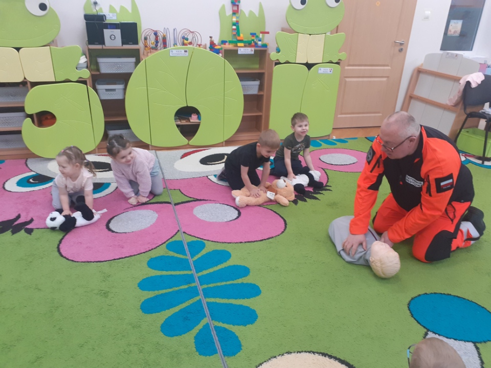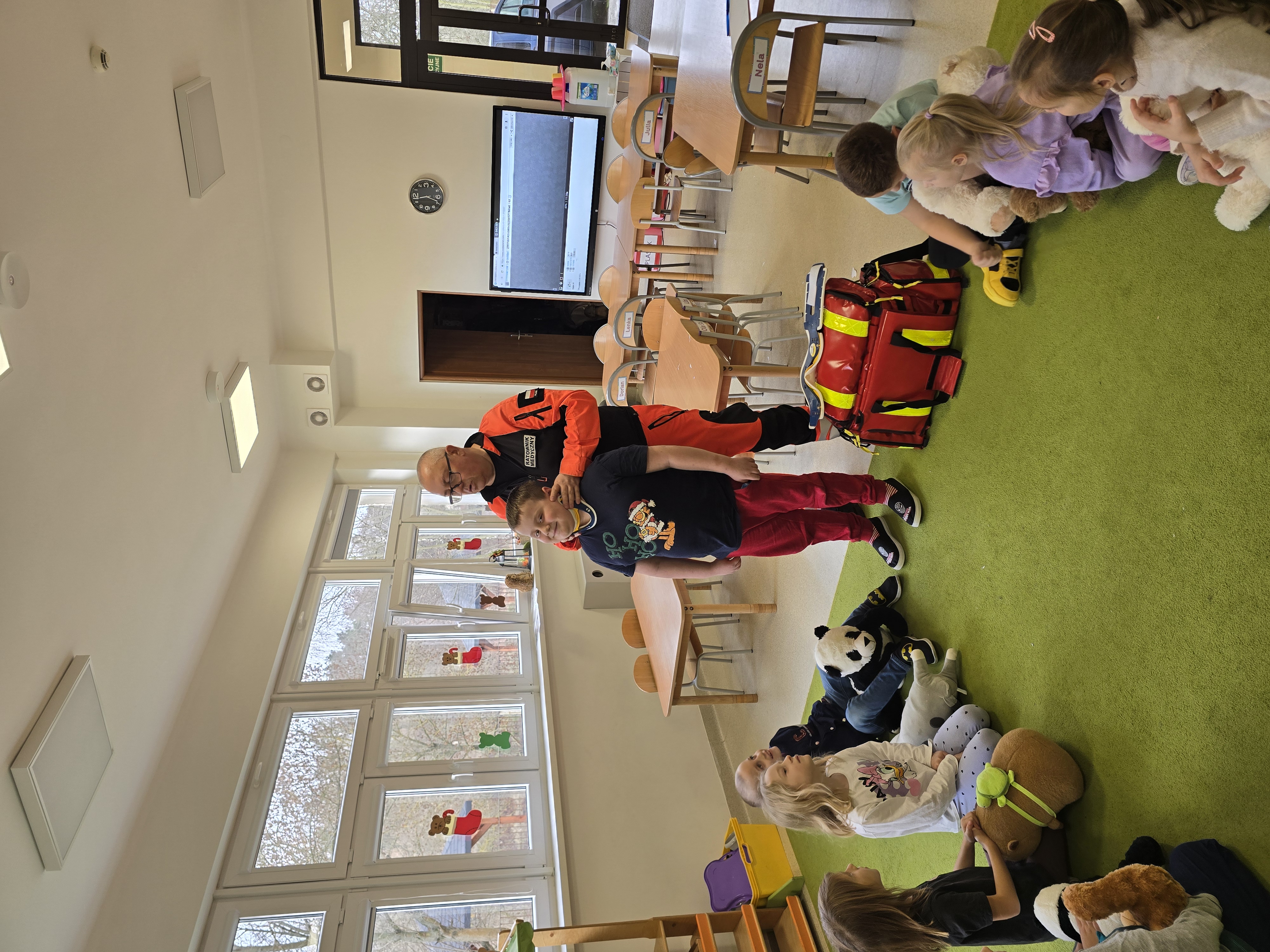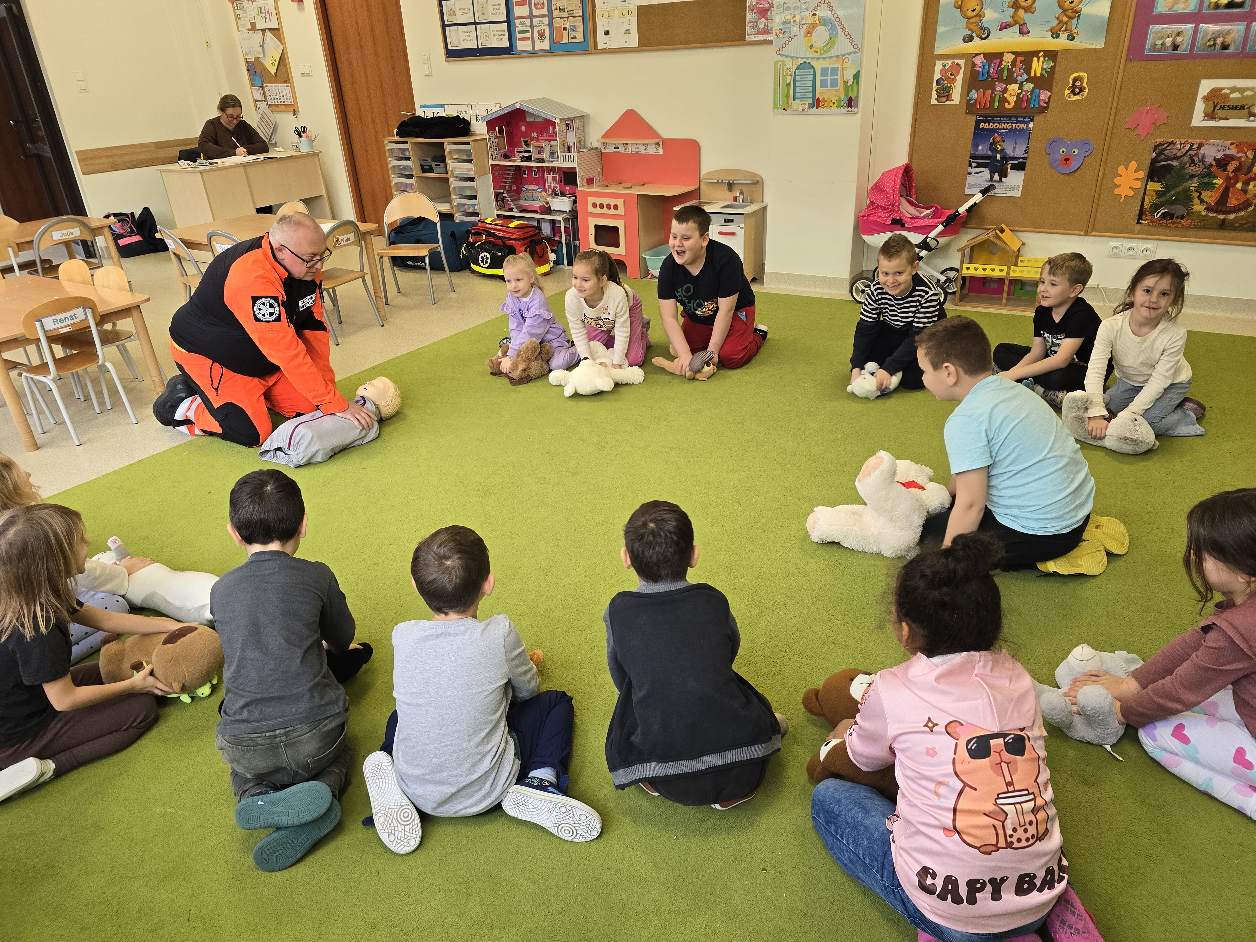 W naszym przedszkolu odbyły się zajęcia z pierwszej pomocy prowadzone przez ratownika medycznego. Dzieci uczyły się, jak pomagać potrzebującym, wykorzystując w ćwiczeniach swoje pluszowe misie. Przedszkolaki poznawały podstawowe zasady udzielania pierwszej pomocy. Zajęcia były pełne zabawy i praktycznych ćwiczeń, dzięki czemu dzieci w przystępny sposób zdobyły istotną wiedzę o ratowaniu życia.